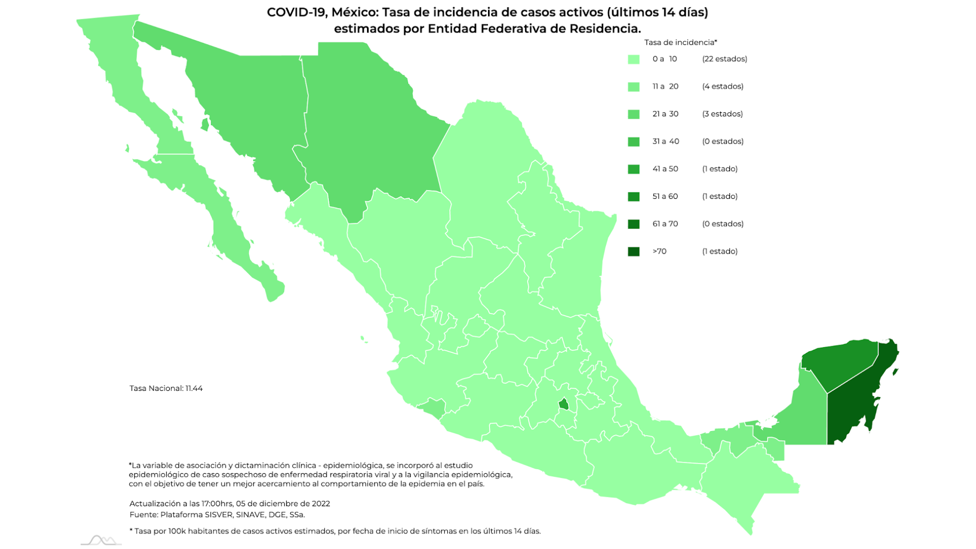 Los puntos de más infecciones son: Ciudad de México, Estado de México, Yucatán, Quintana Roo, Sonora, Chihuahua, Baja California Norte y Baja California Sur.