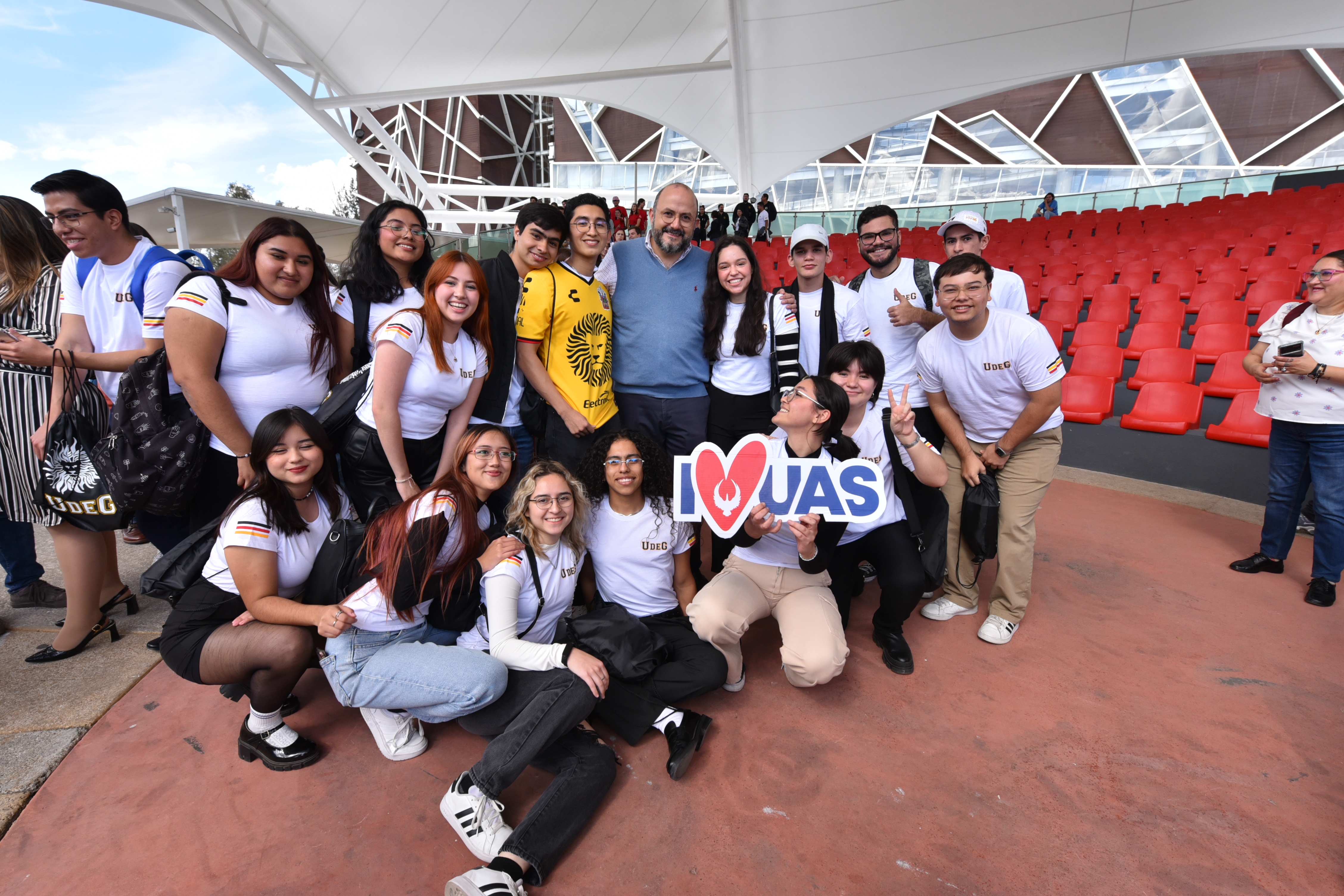 Invitó a los presentes a formar parte del Centro Cultural Universitario (CCU) y sus foros, a vivir los partidos del equipo de futbol Leones Negros, así como a conocer la gastronomía y la cultura de Jalisco.