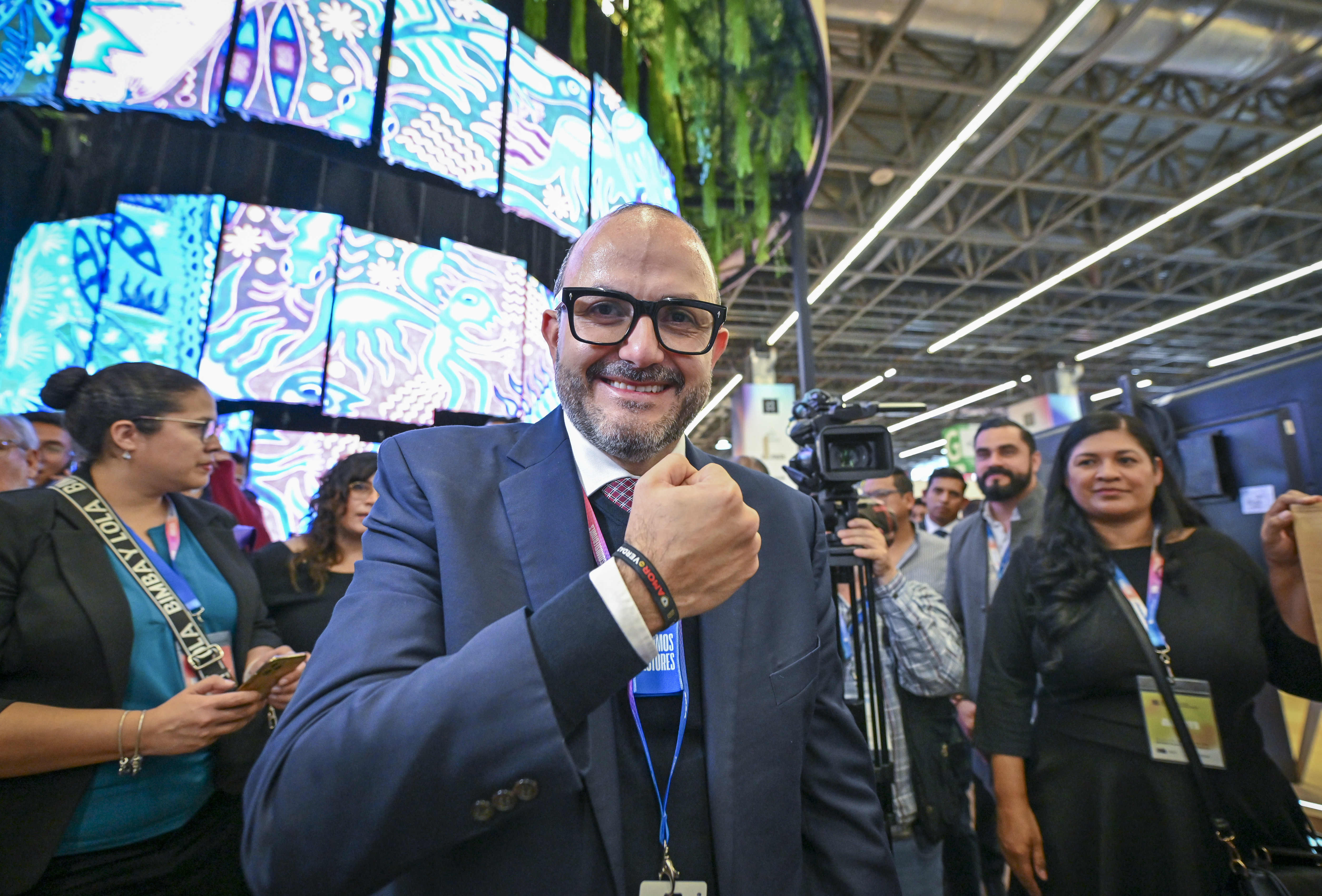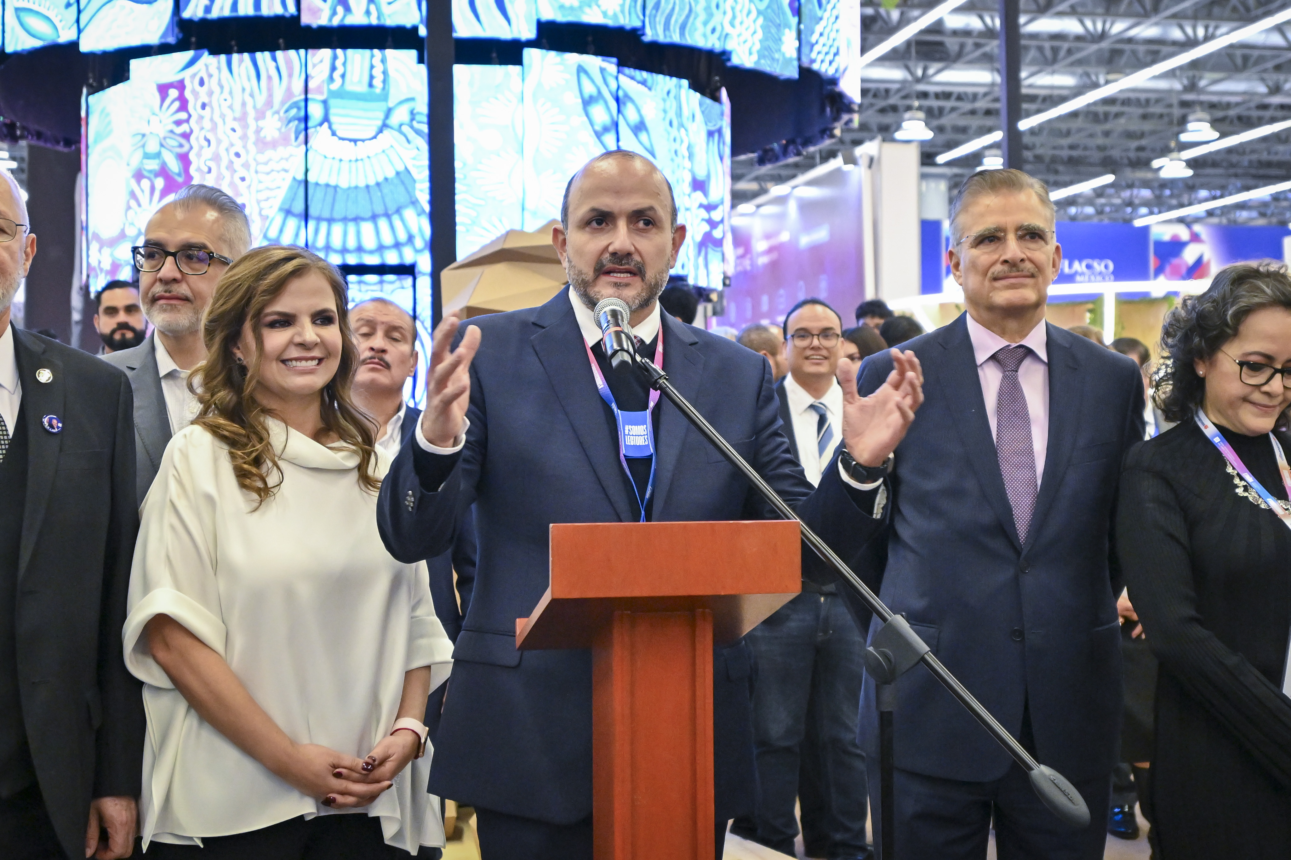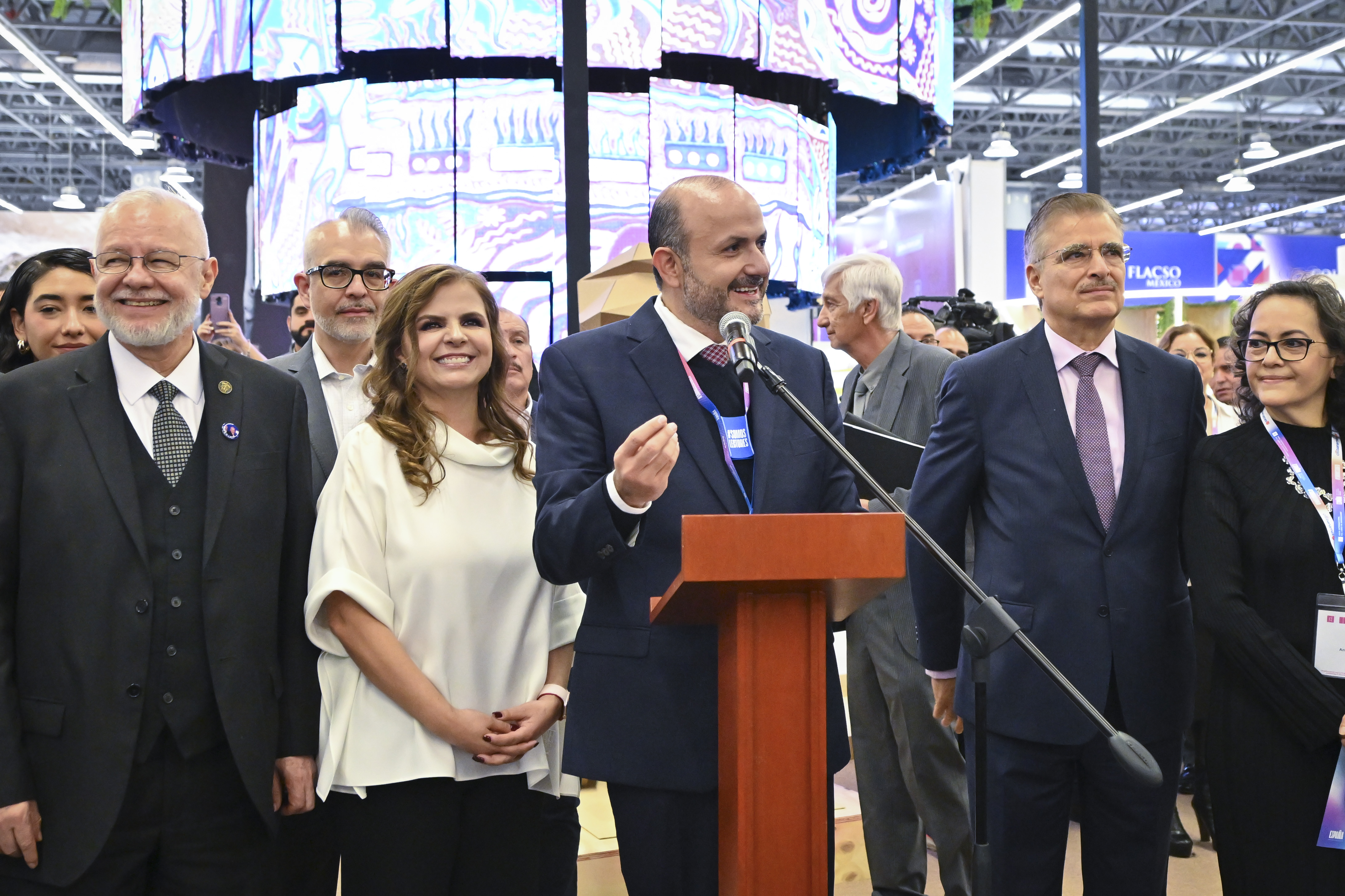 La Rectora General electa, maestra Karla Planter Pérez, destacó el diseño del pabellón, donde el arte audiovisual llama la atención de los visitante a la FIL.