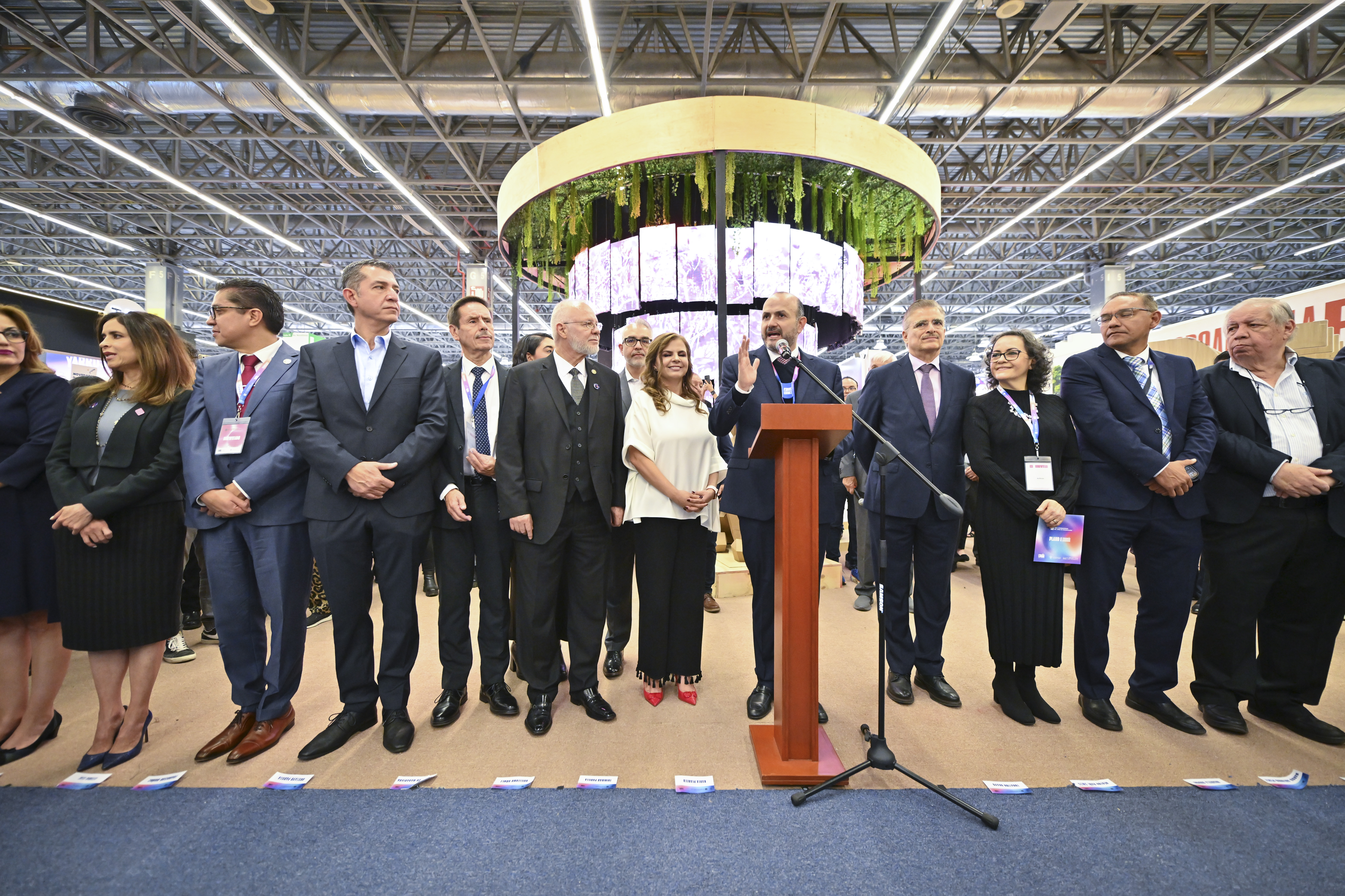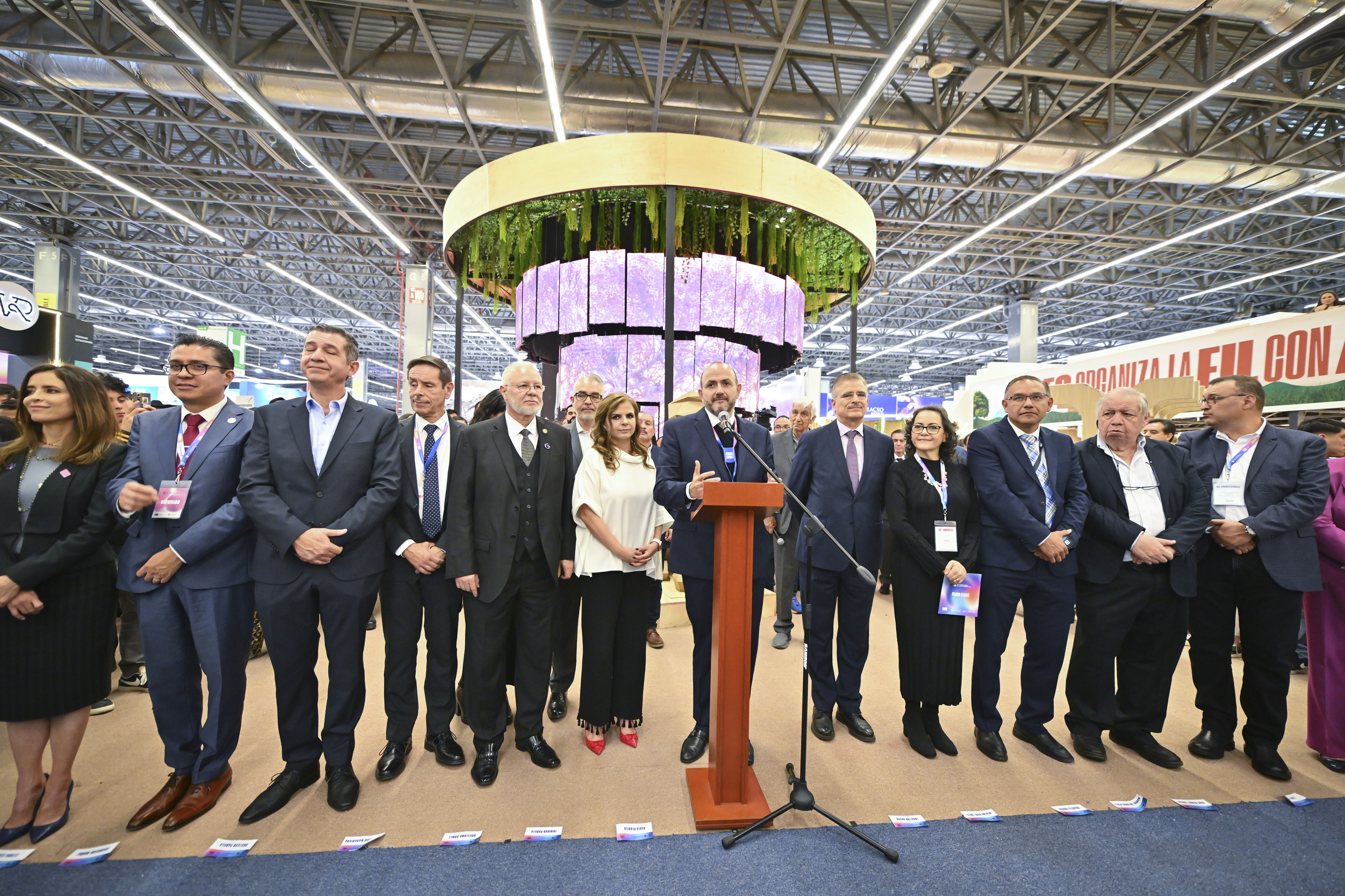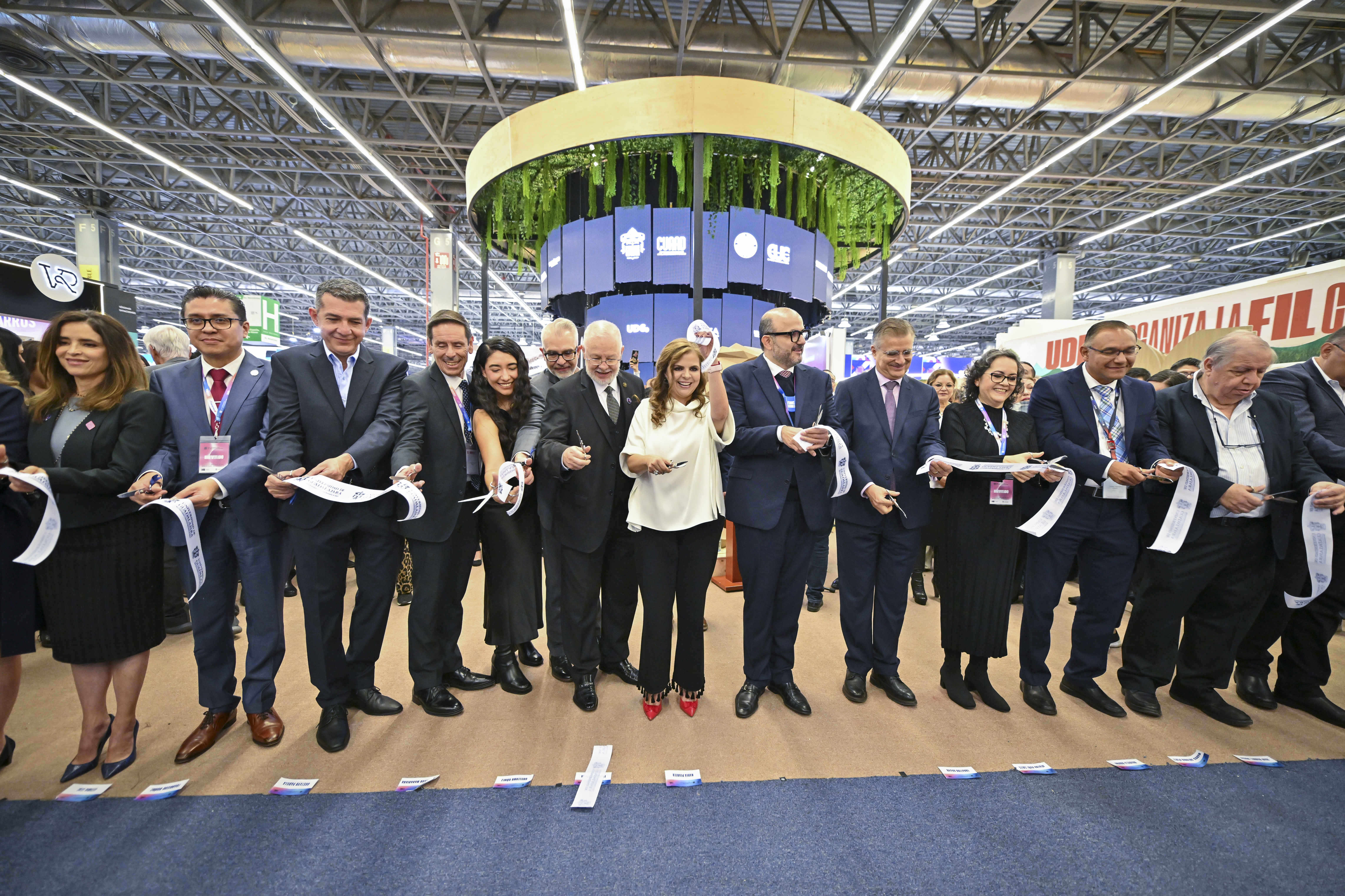 El Rector General, doctor Ricardo Villanueva Lomelí, inauguró este espacio en cuyo centro figura un árbol con sonidos de aves, viento, lluvia y rugidos de leones que descansan en sus raíces. Y refirió la vieja tradición en la FIL Guadalajara en la que los editores competían por el mejor stand, que se interrumpió durante la pandemia del COVID-19.