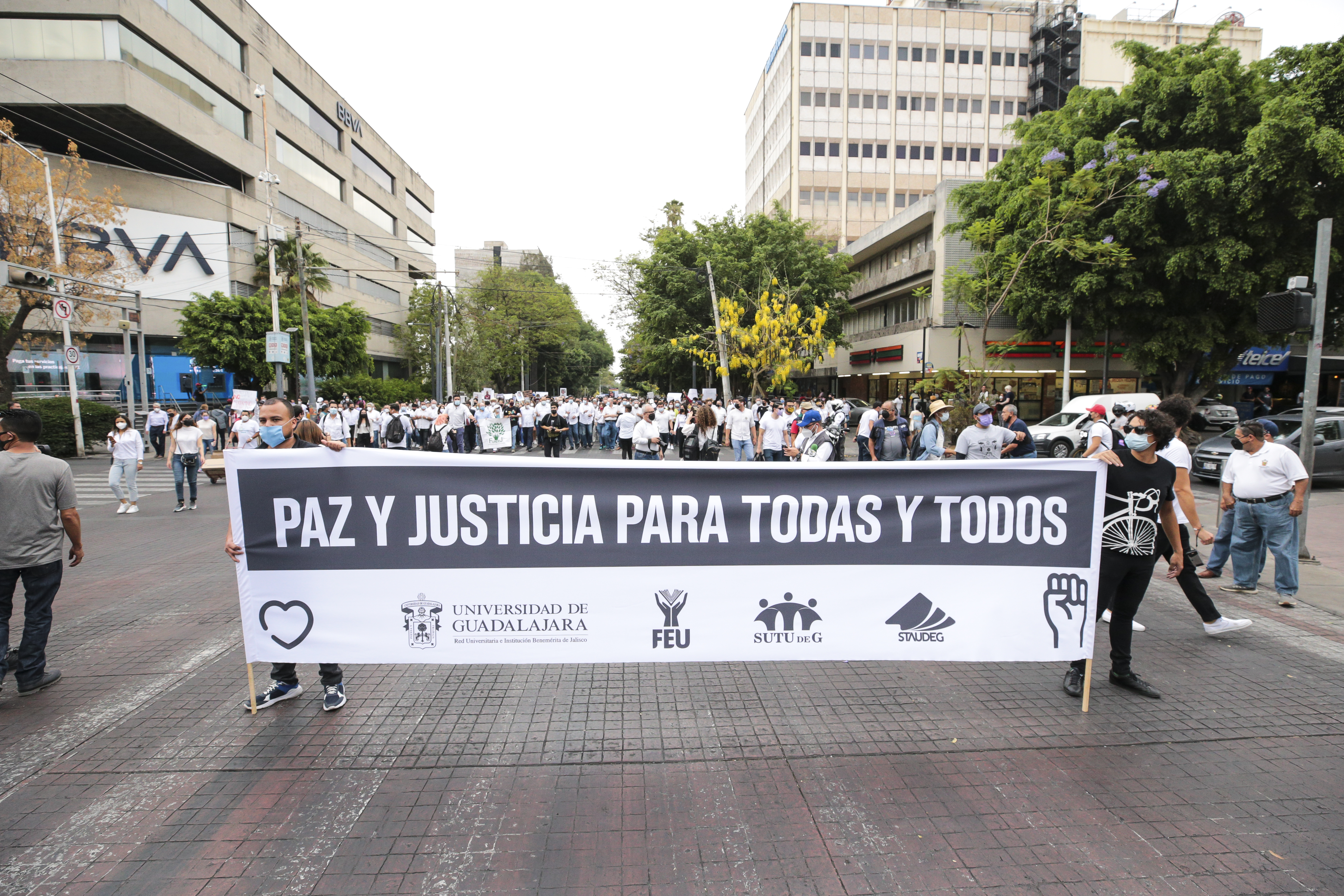 Diez mil gargantas se unieron en un solo clamor: la exigencia de paz. La comunidad de la Universidad de Guadalajara se volcó a las calles de la capital tapatía para exigir la localización con vida de 12 mil 680 personas en Jalisco y justicia por el asesinato de los hermanos González Moreno, quienes fueron sustraídos de su hogar y asesinados. Ana Karen, Luis Ángel y José Alberto, este último, estudiante de la licenciatura en Geografía por el Centro Universitario de Ciencias Sociales y Humanidades (CUCSH) de esta Casa de Estudio.
