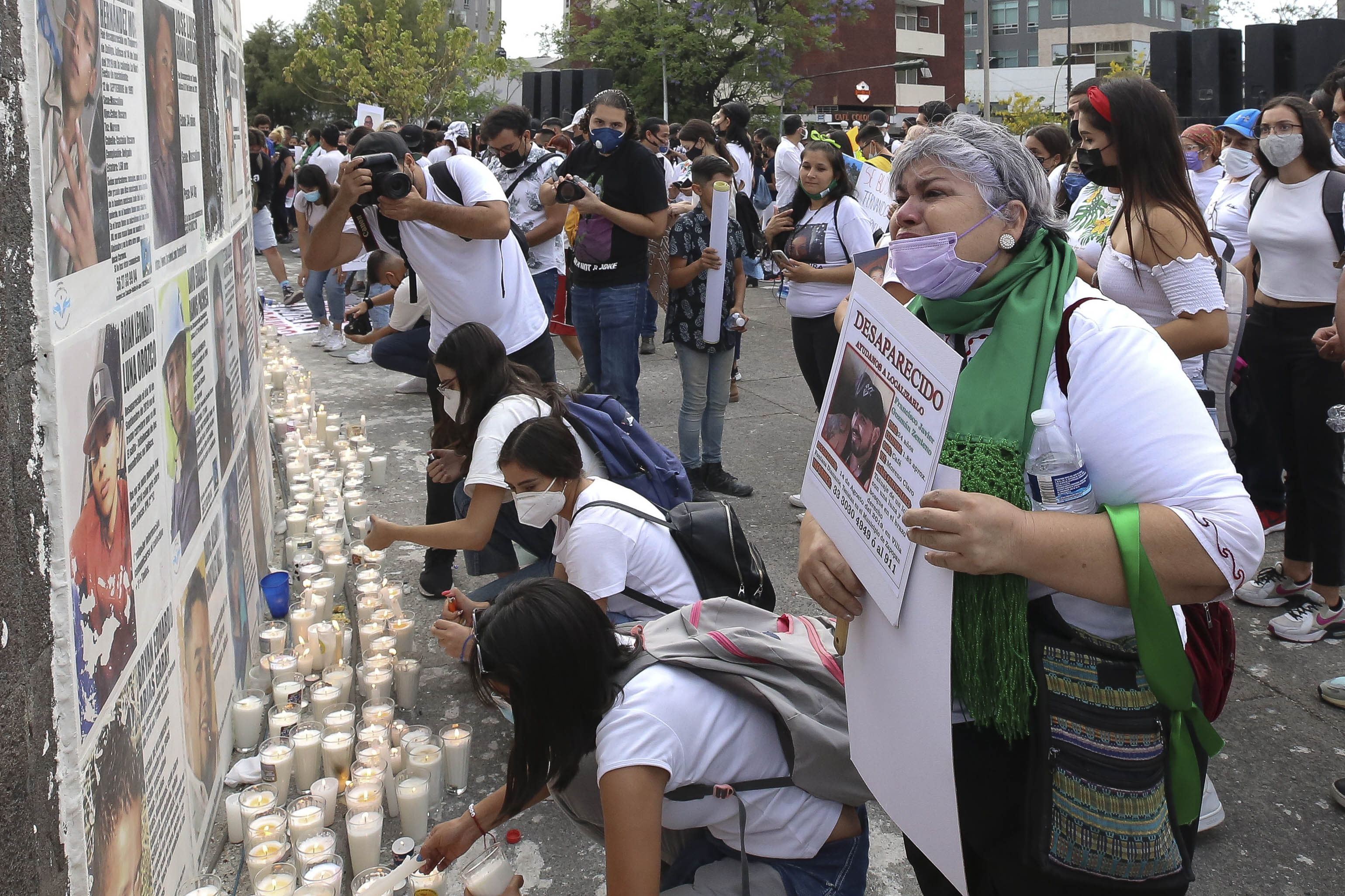 Las veladoras iluminaron la Glorieta de las y los Desaparecidos, para recordar a las víctimas. Las pancartas exigían a los tres niveles de gobierno su obligación de otorgar seguridad a las personas y las fotografías de quienes no han regresado a su hogar, no solo en Guadalajara, sino prácticamente en todos los municipios del Estado.