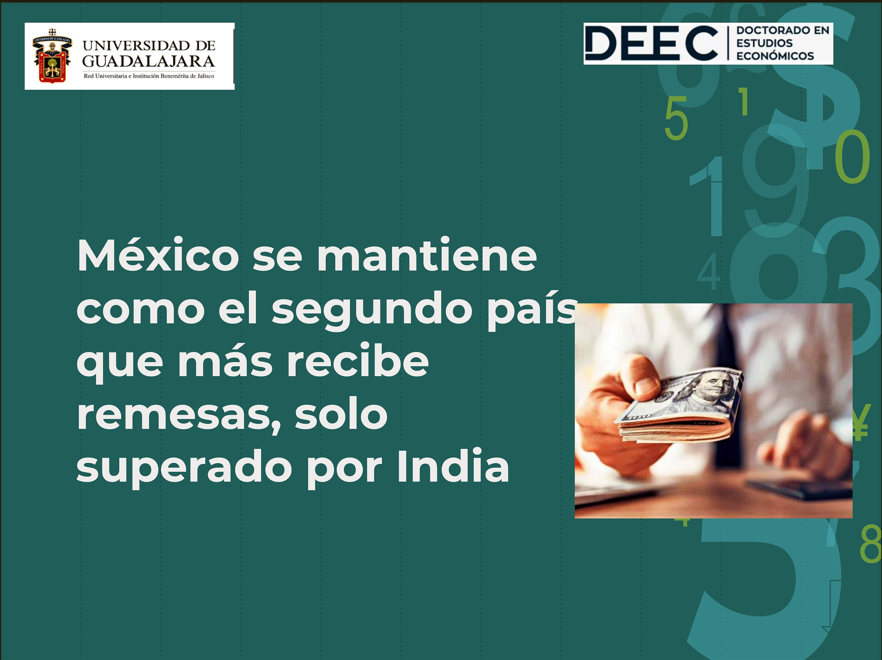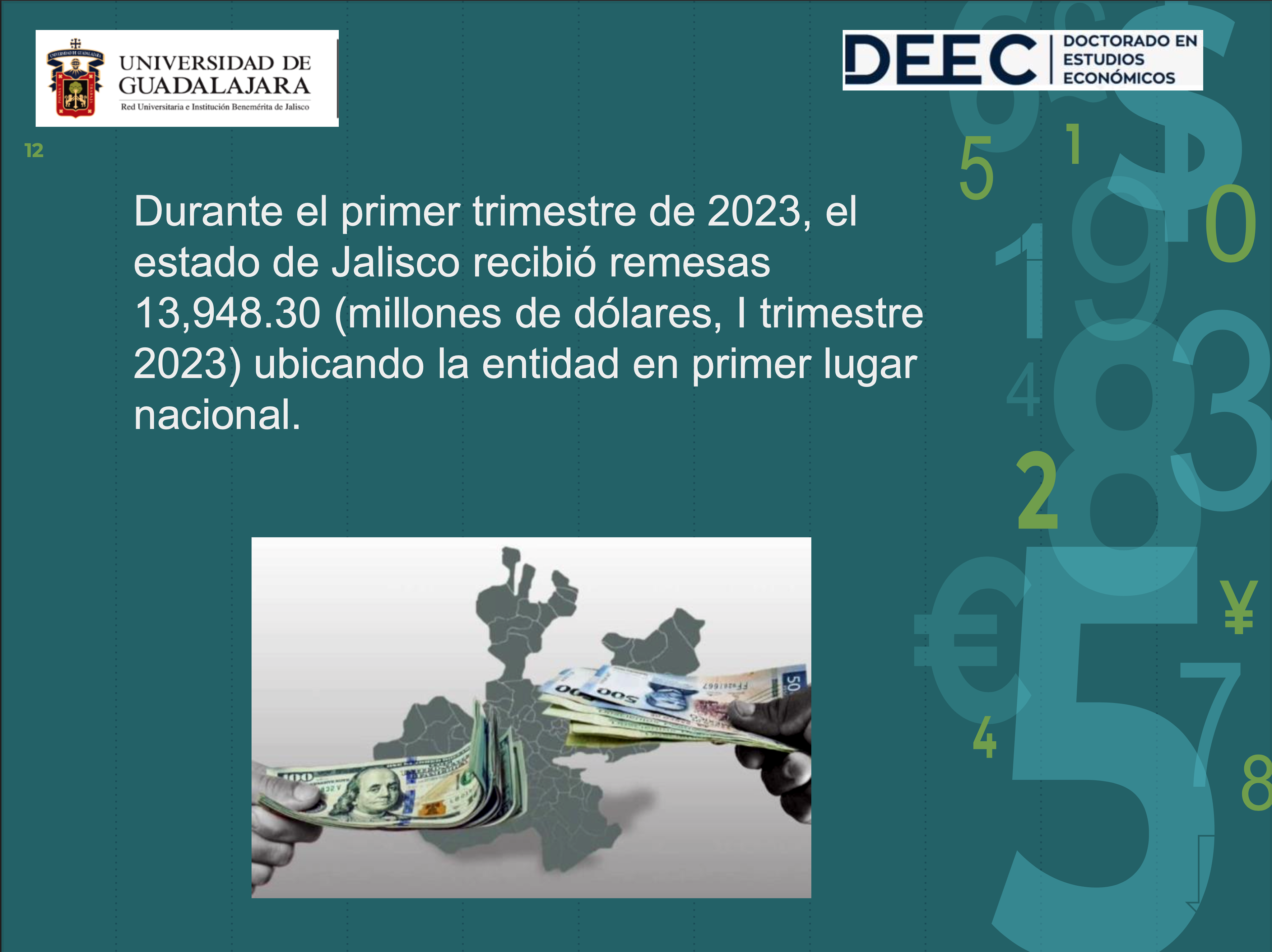 Se estima que Jalisco recibe 9.11 por ciento del total de las remesas a nivel nacional; sin embargo, el doctor Antonio Ruiz Porras, detalló que este indicador no necesariamente refleja una mejora económica para los habitantes de Jalisco.
