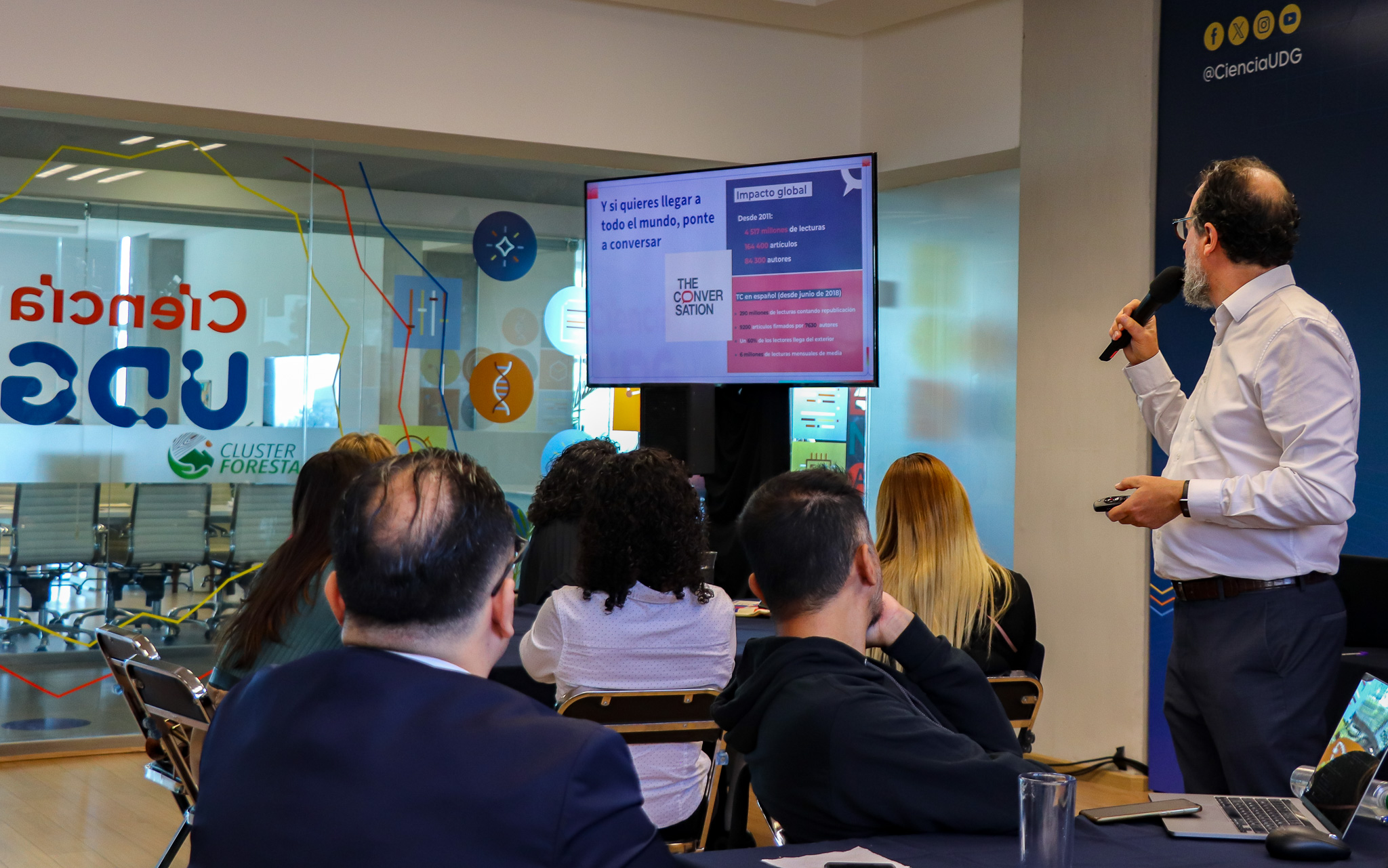 Como parte de las actividades de dicho convenio, en el marco del Foro Ciencia UDG 2023 se realizó el taller “¿Cómo lograr una divulgación escrita con impacto internacional?”, impartido por Jordi Navas, delegado de The Conversation y Elena Sanz, redactora jefa de The Conversation ES. Debido a la aceptación de esta actividad ya se están haciendo los preparativos para realizarlo nuevamente este año.