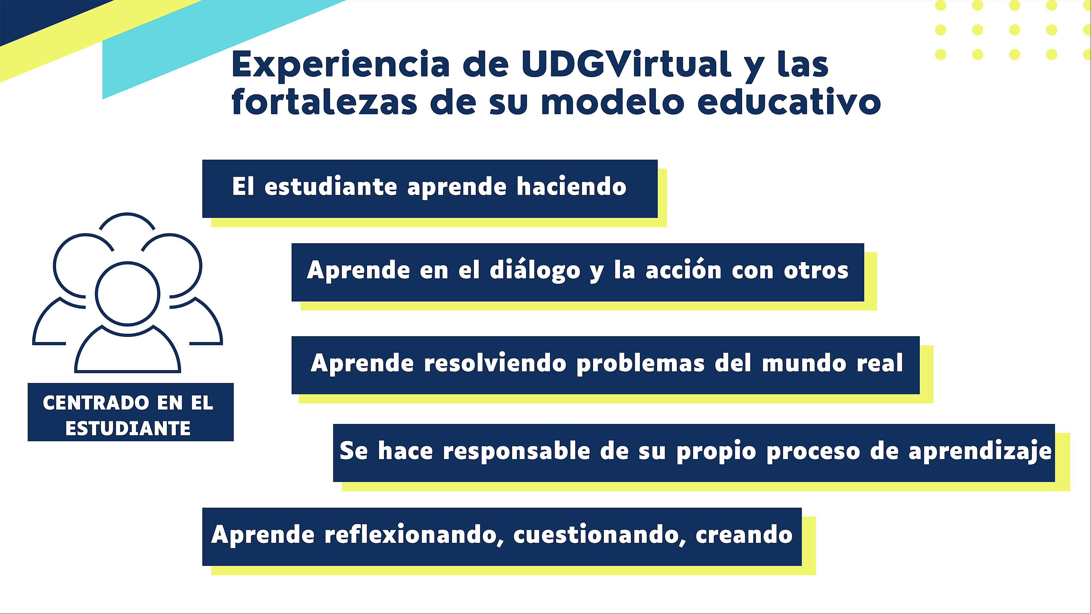 El Director Académico del SUV, maestro Rubén García Sánchez, detalló que el modelo que emplea esta institución coloca al alumno en el centro de la enseñanza y le proporciona las condiciones para que pueda aprender haciendo, dialogando y actuando junto con otros estudiantes.
