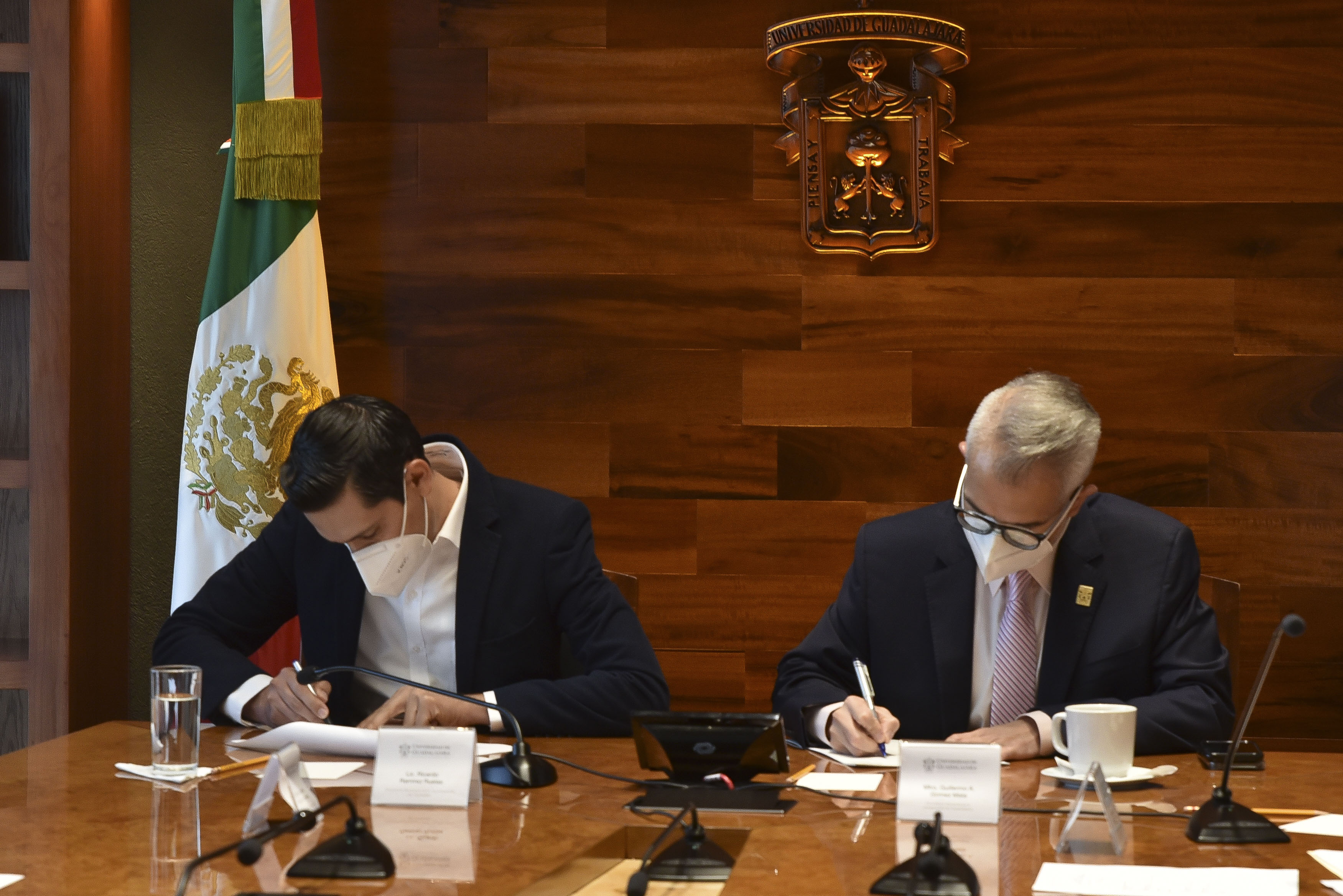 La firma de la escritura de donación se realizó en un acto programado en la Sala José Clemente Orozco del edificio de Rectoría General, en el que participaron el Presidente Municipal de Tecolotlán, licenciado Ricardo Ramírez Ruelas y el Secretario General de la UdeG, maestro Guillermo Gómez Mata.