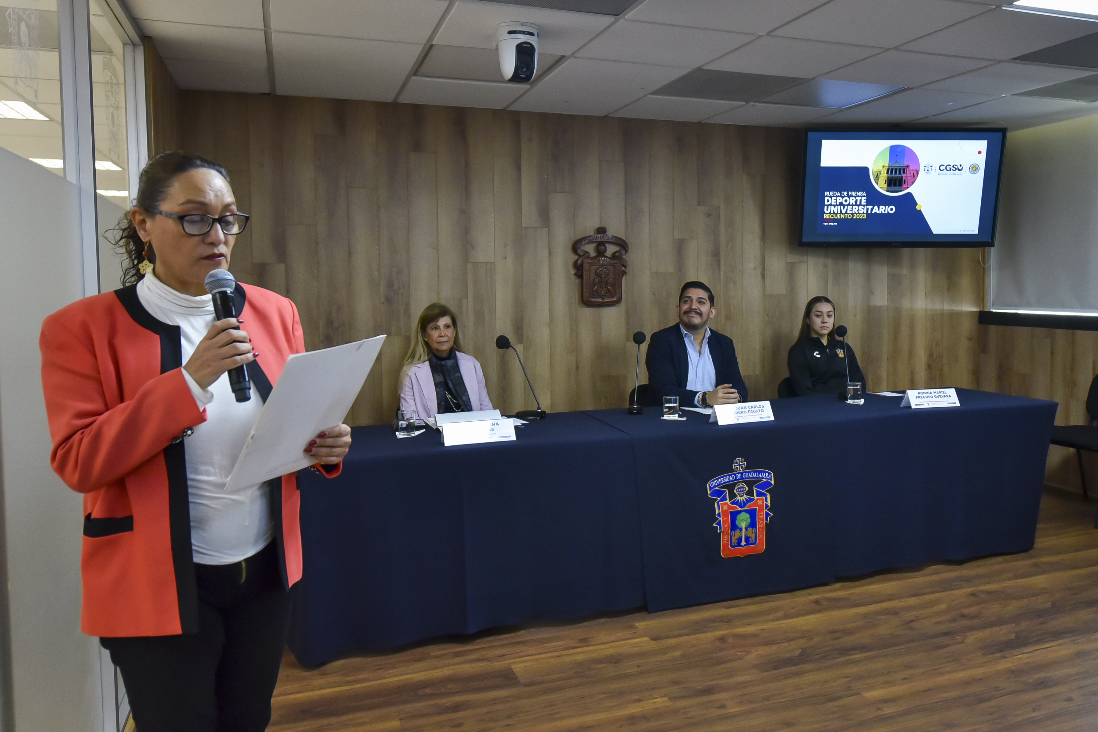 La Coordinadora de Cultura Física, doctora Georgina Contreras de la Torre, compartió los logros de la UdeG en materia deportiva de 2023, donde destaca el segundo lugar en la Universiada Nacional, con la suma histórica de más de 100 medallas; así como la participación de seis mil atletas, en 28 disciplinas, en todo el proceso del Campeonato Intercentros Universitarios.