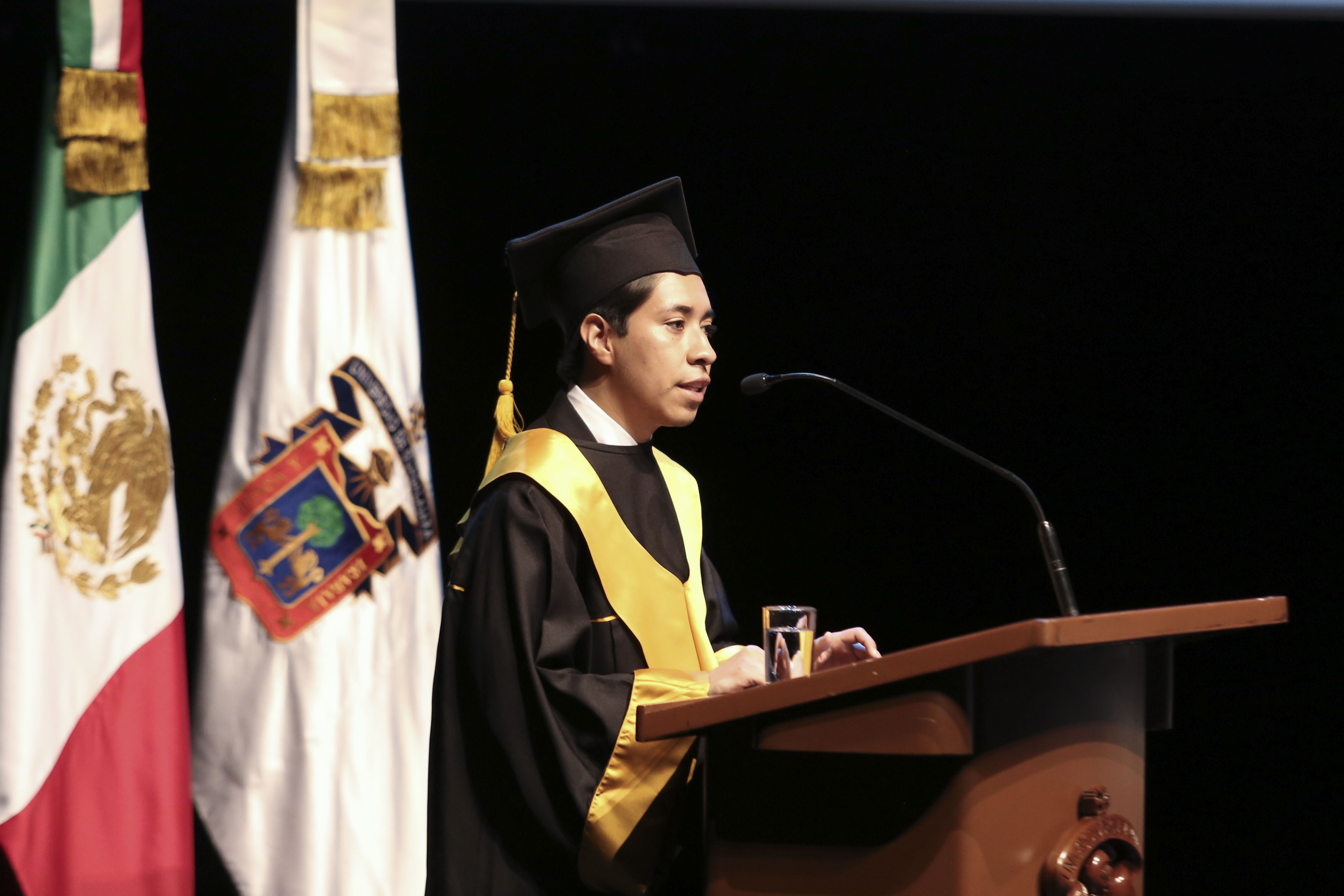 El joven remitió a su experiencia durante la pandemia y recordó la labor de la UdeG para enfrentarla, a fin de que su generación pudiera seguir estudiando. “Quiero reconocer a las familias, que han hecho todo lo posible para ayudarnos a concluir nuestras carreras”.