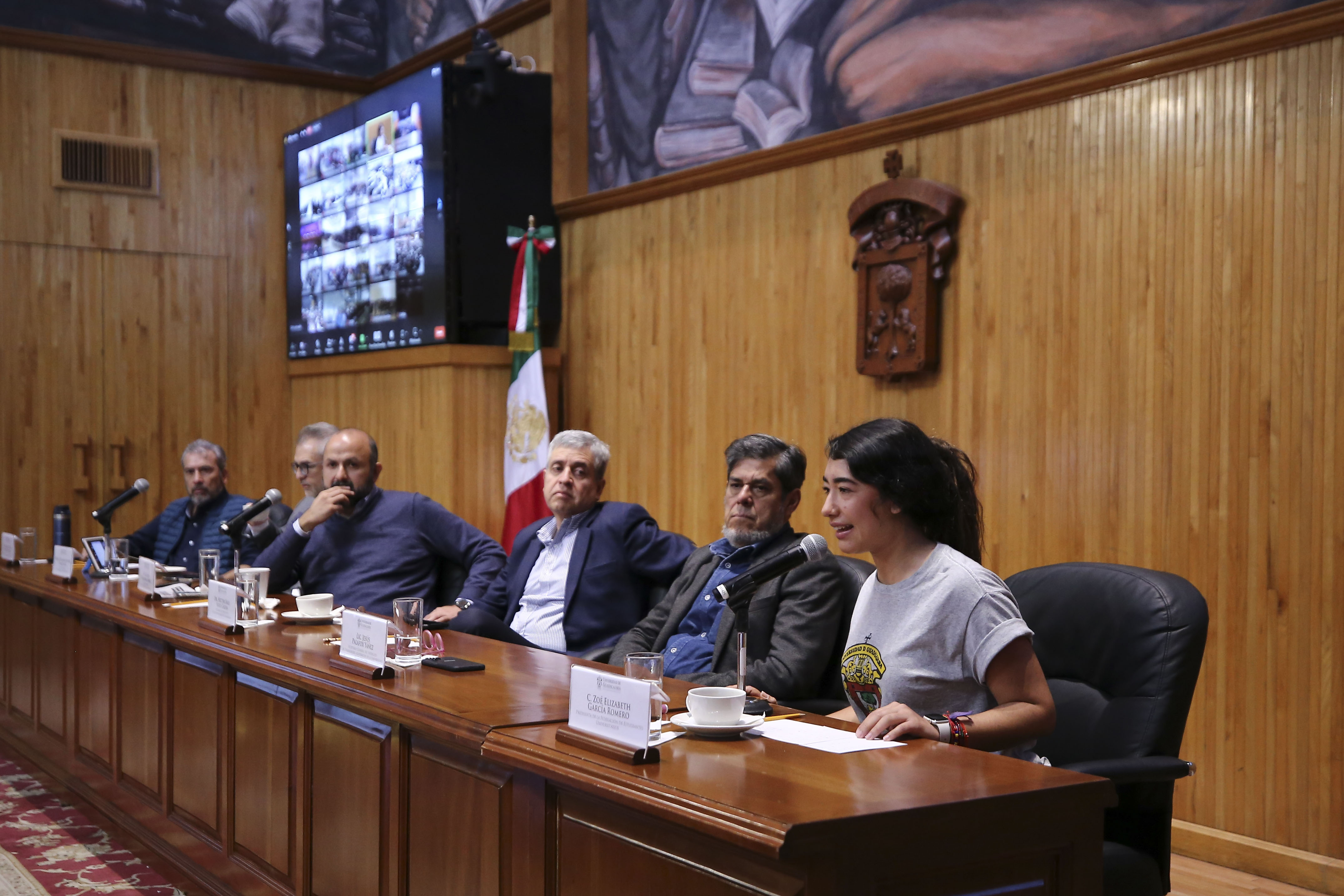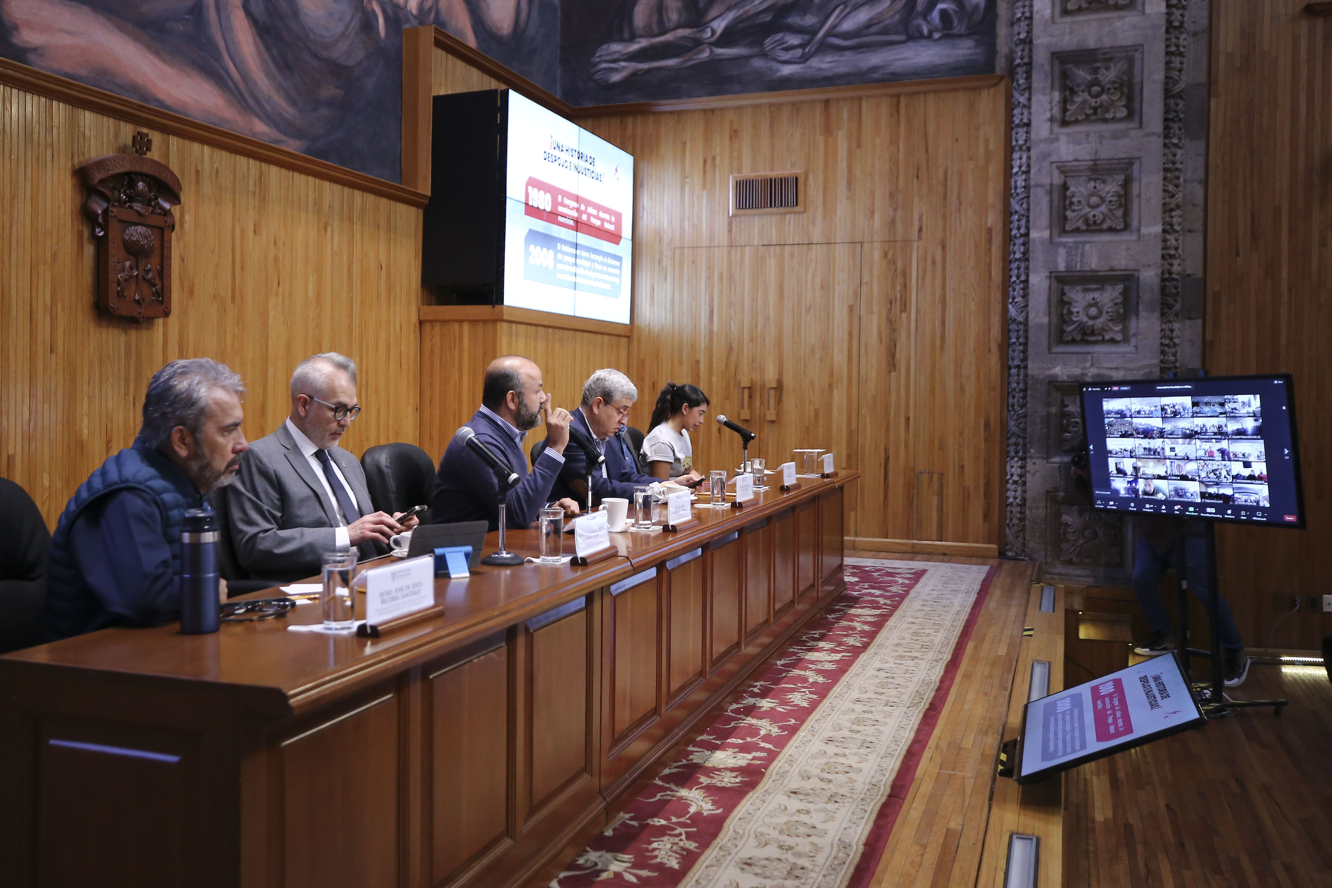 Este lunes Villanueva Lomelí y autoridades compartieron la historia de este conflicto y el Estado de emergencia en el que se encuentra la UdeG a toda la Red Universitaria mediante una sesión informativa virtual realizada desde el Paraninfo Enrique Díaz de León, a la que se conectaron decenas de comunidades de preparatorias y centros universitarios en Jalisco.