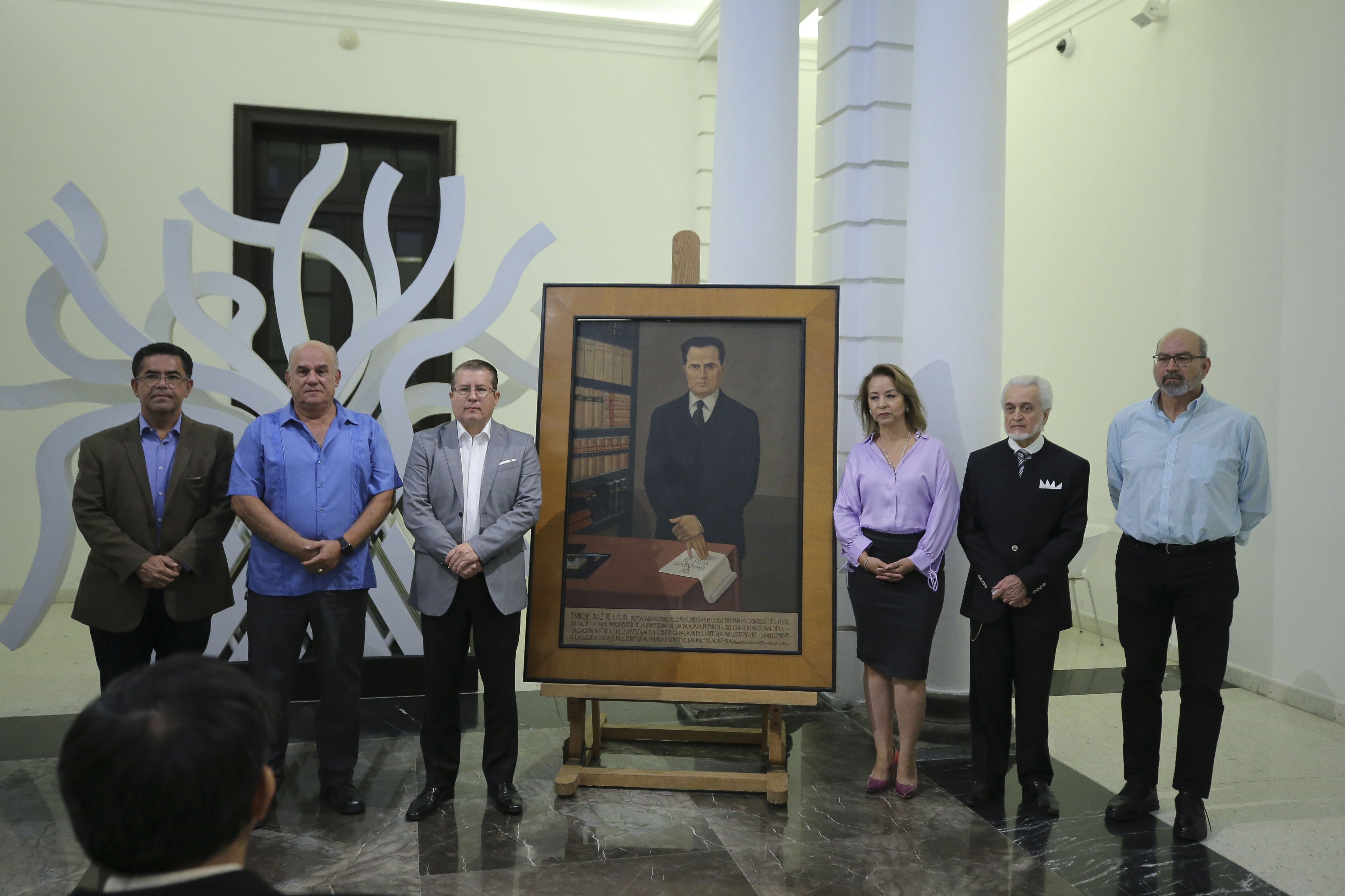 Autoridades universitarias y familiares de Enrique Díaz de León, quien fue el primer Rector de la Universidad de Guadalajara (UdeG), recordaron su legado en lo que fue el 129 aniversario de su natalicio, en ceremonia realizada en el Patio del Museo de las Artes (MUSA) de esta Casa de Estudio.