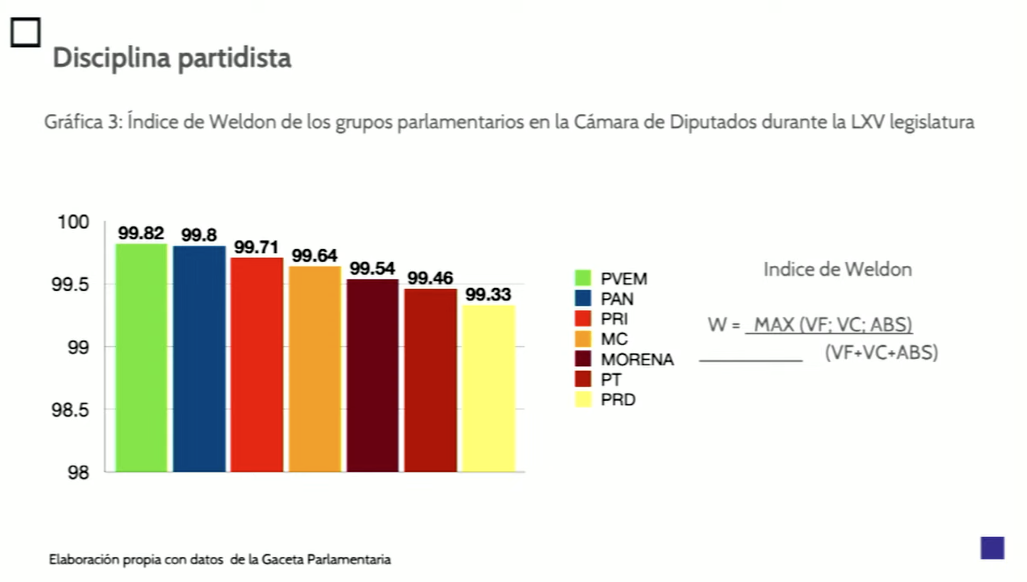 Destacó que la coalición “Juntos Hacemos Historia” actúa como partido satélite de Morena, mientras PAN y PRD le hacen oposición; el PRI mantiene una posición intermedia al reforzar la alianza “Va por México”, mientras que Movimiento Ciudadano mantiene el abstencionismo en las decisiones parlamentarias.