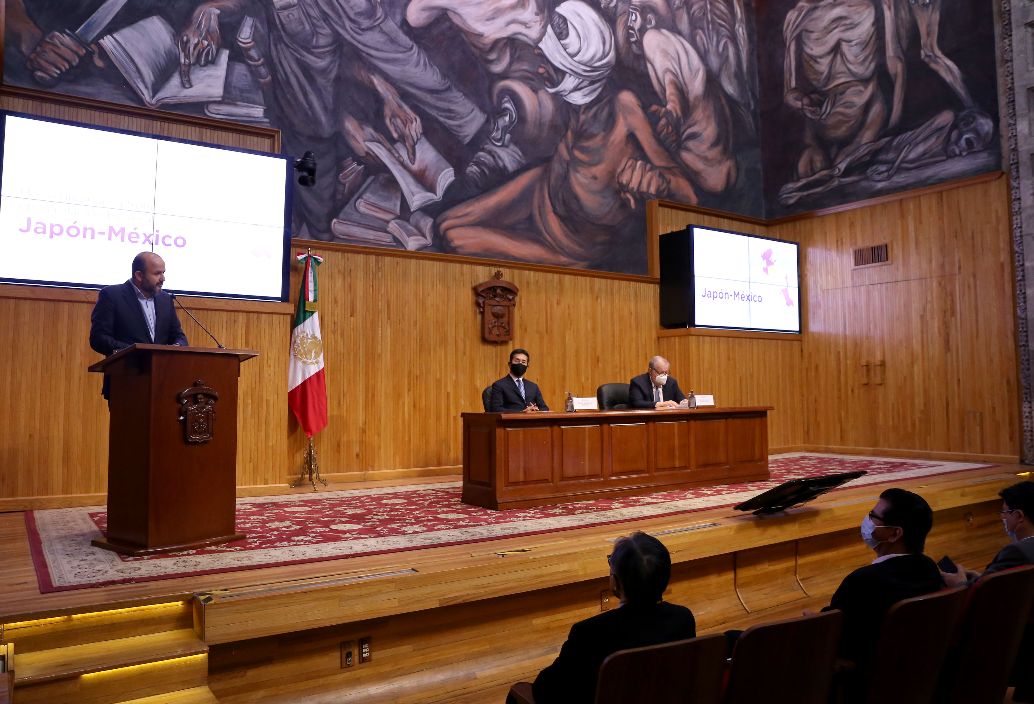 Desde entonces se fortaleció el flujo migratorio de japoneses hacia nuestro país, recordó el el Rector General de la UdeG, doctor Ricardo Villanueva Lomelí, durante la conferencia magistral “Hacia una nueva frontera en la relación bilateral México-Japón”, a cargo del Embajador de Japón en México, Fukushima Noriteru, en el Paraninfo Enrique Díaz de León de esta Casa de Estudio.