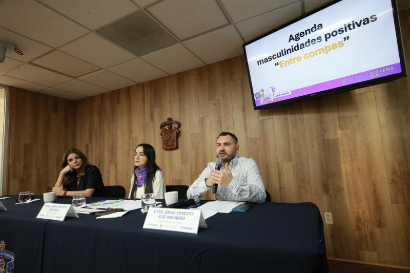 Para ello, una de las estrategias del SEMS es la iniciativa de masculinidades positivas denominada “Entre compas”, que pretende transformar la forma en que los varones se relacionan mediante video-cápsulas con especialistas y círculos de reflexión con guías de trabajo específicas en todas las preparatorias, detalló Ruiz Navarro.