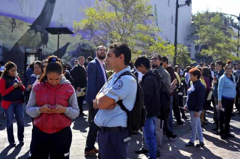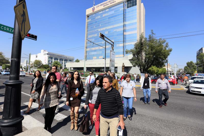 En el edificio de la Rectoría General de la UdeG se realizaron dos evacuaciones tras los temblores. La primera ocurrió con “calma y de buena manera”, el tiempo fue de entre cuatro y cinco minutos, de acuerdo con el responsable de conservación y mantenimiento, José Guadalupe Rodríguez Sedano. Tras una revisión en la cimentación, plafones, cristales, elevadores y sistema hidráulico, “no hubo daños”, concluyó.