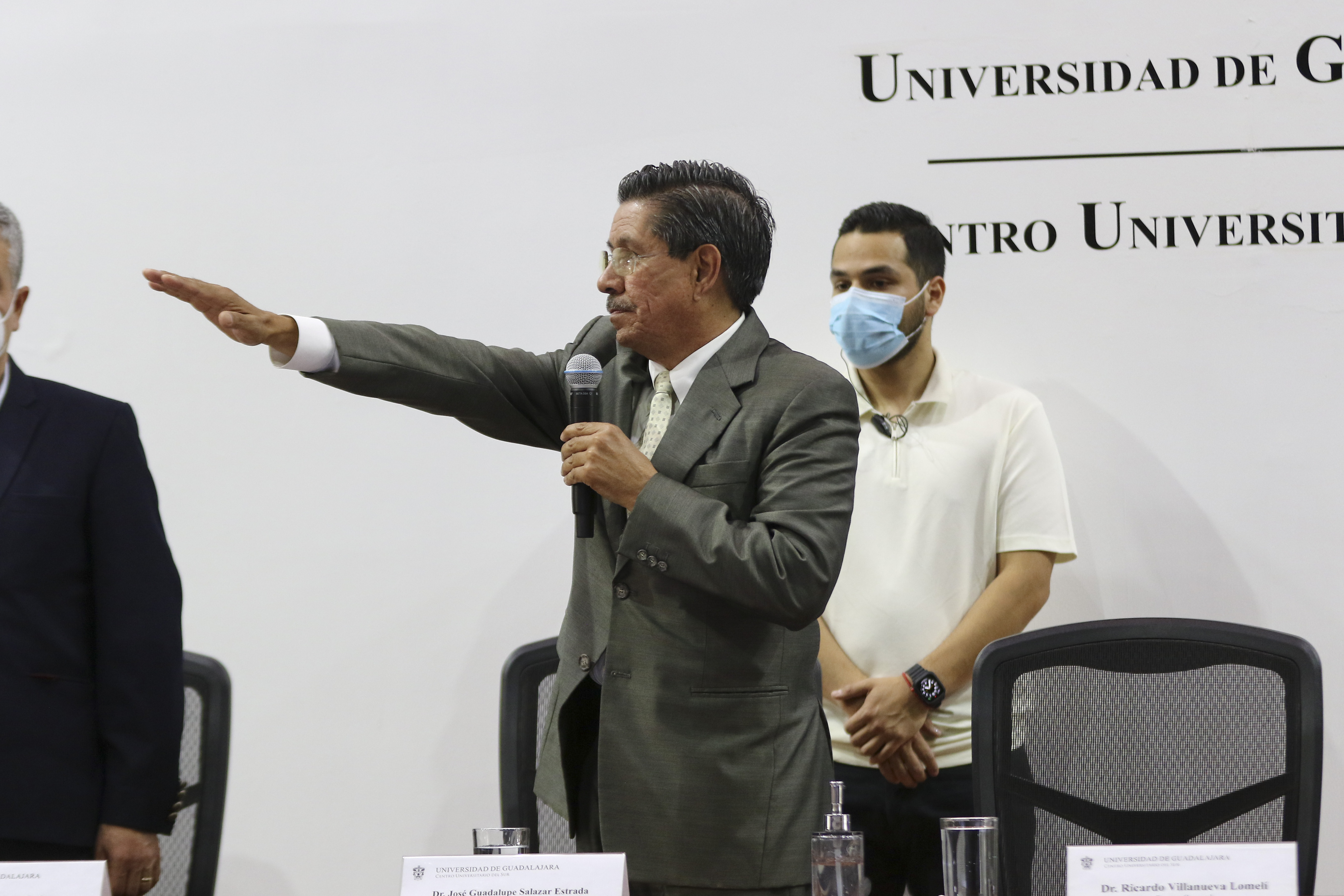El doctor José Guadalupe Salazar Estrada tomó protesta para el periodo 2022- 2025, en ceremonia realizada en el auditorio Adolfo Aguilar Zínser, del CUSur, ante la presencia del Rector General de la Universidad de Guadalajara (UdeG), doctor Ricardo Villanueva Lomelí, y la comunidad universitaria del plantel.