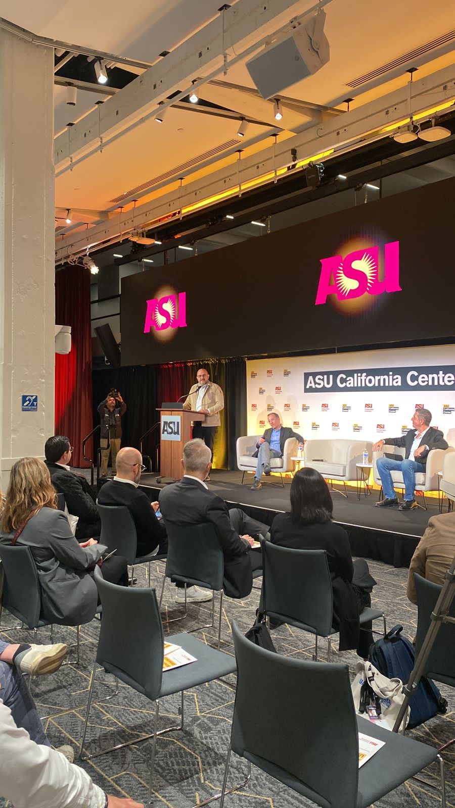 Villanueva Lomelí reflexionó sobre el papel de las universidades en un futuro que cada vez más es incierto, y destacó que la universidad del futuro debe ser una universidad “que se mueva más rápido, que actualice sus planes de estudio y no cada quince años. Una universidad que pueda estar aquí (California) y que pueda estar allá en Guadalajara”.