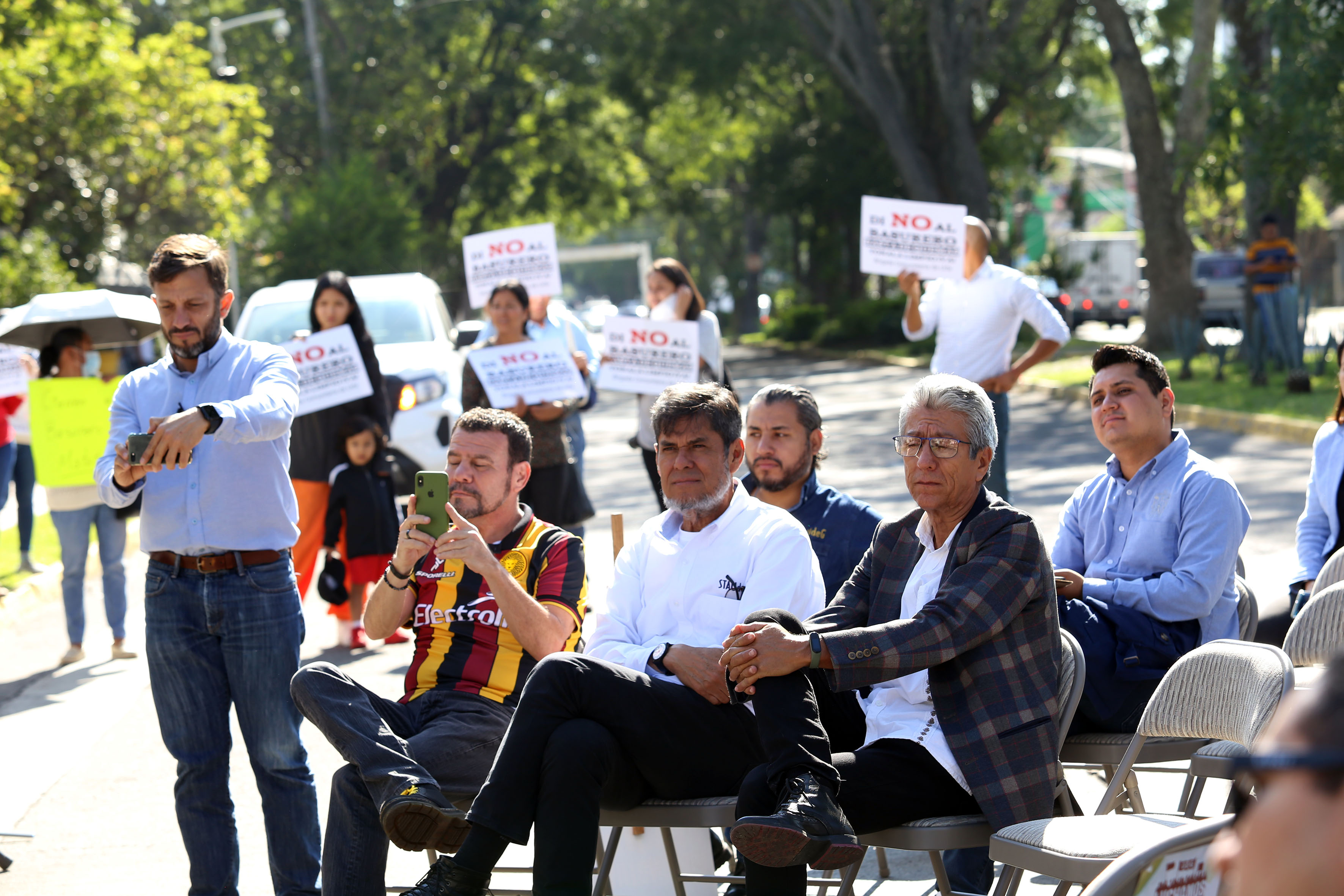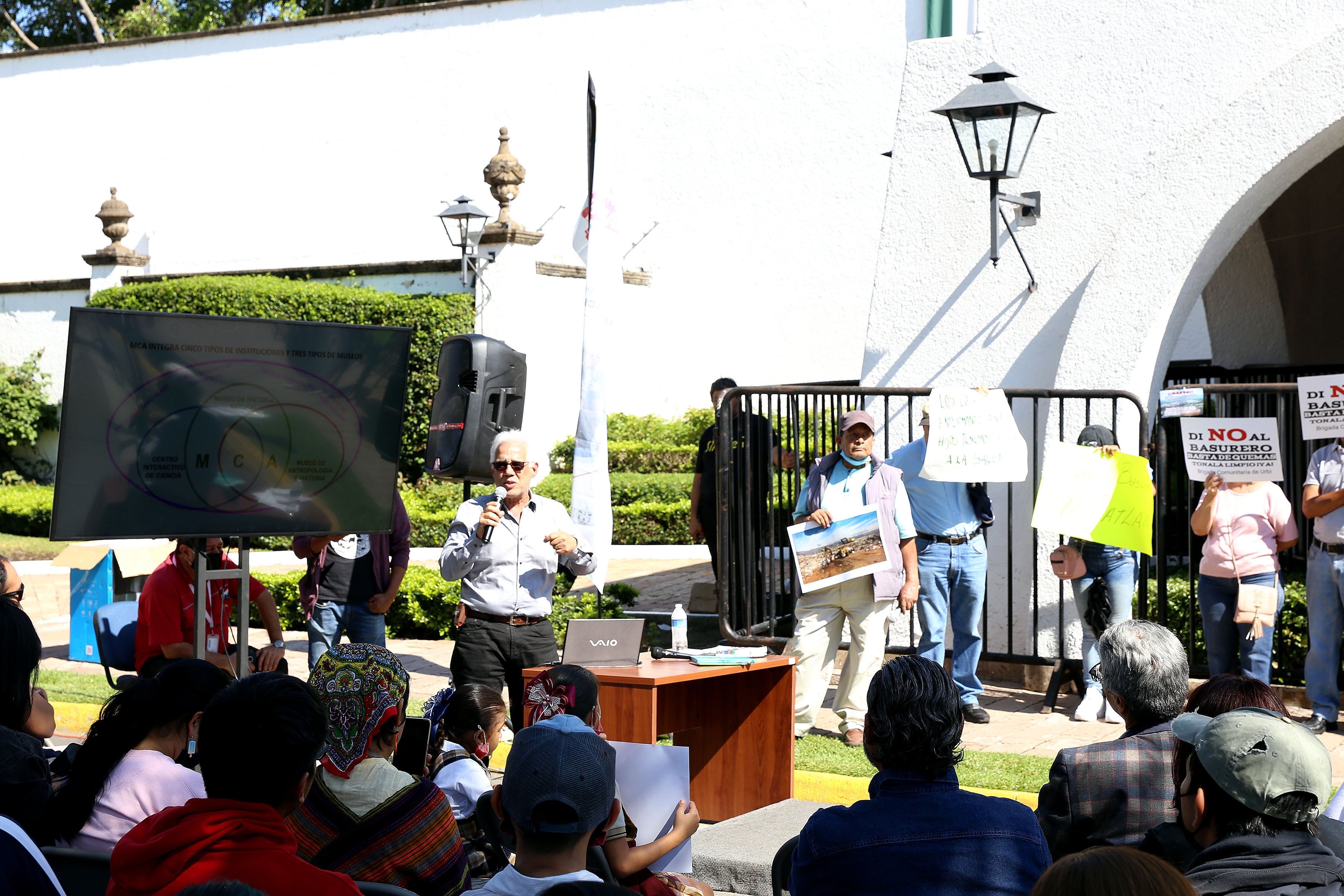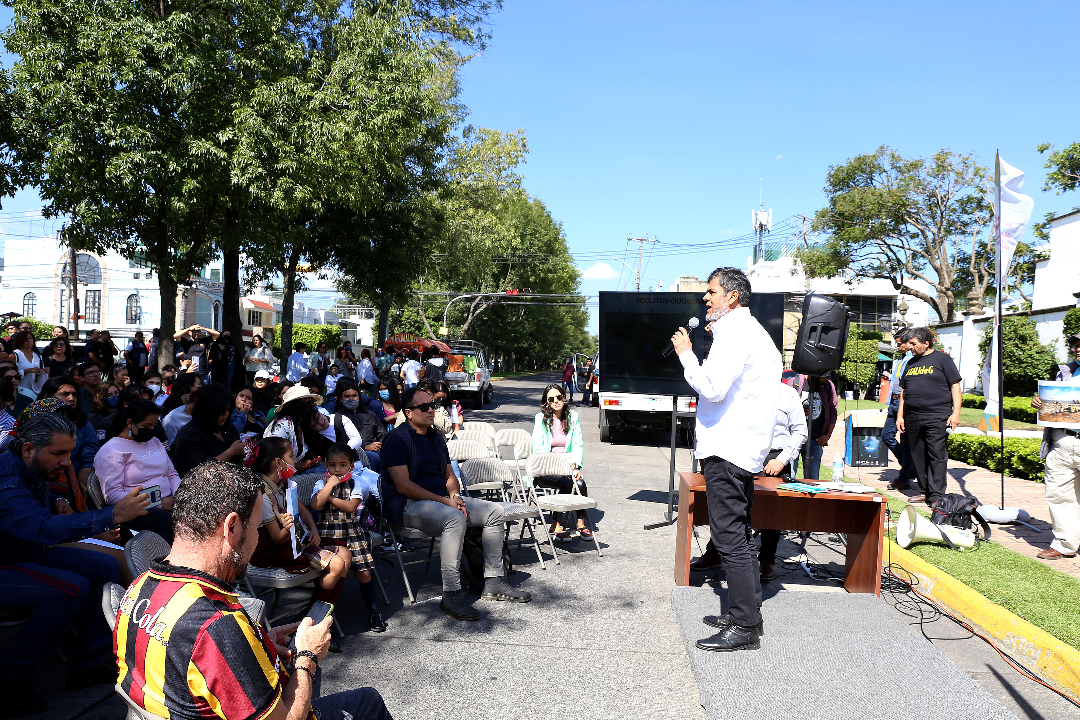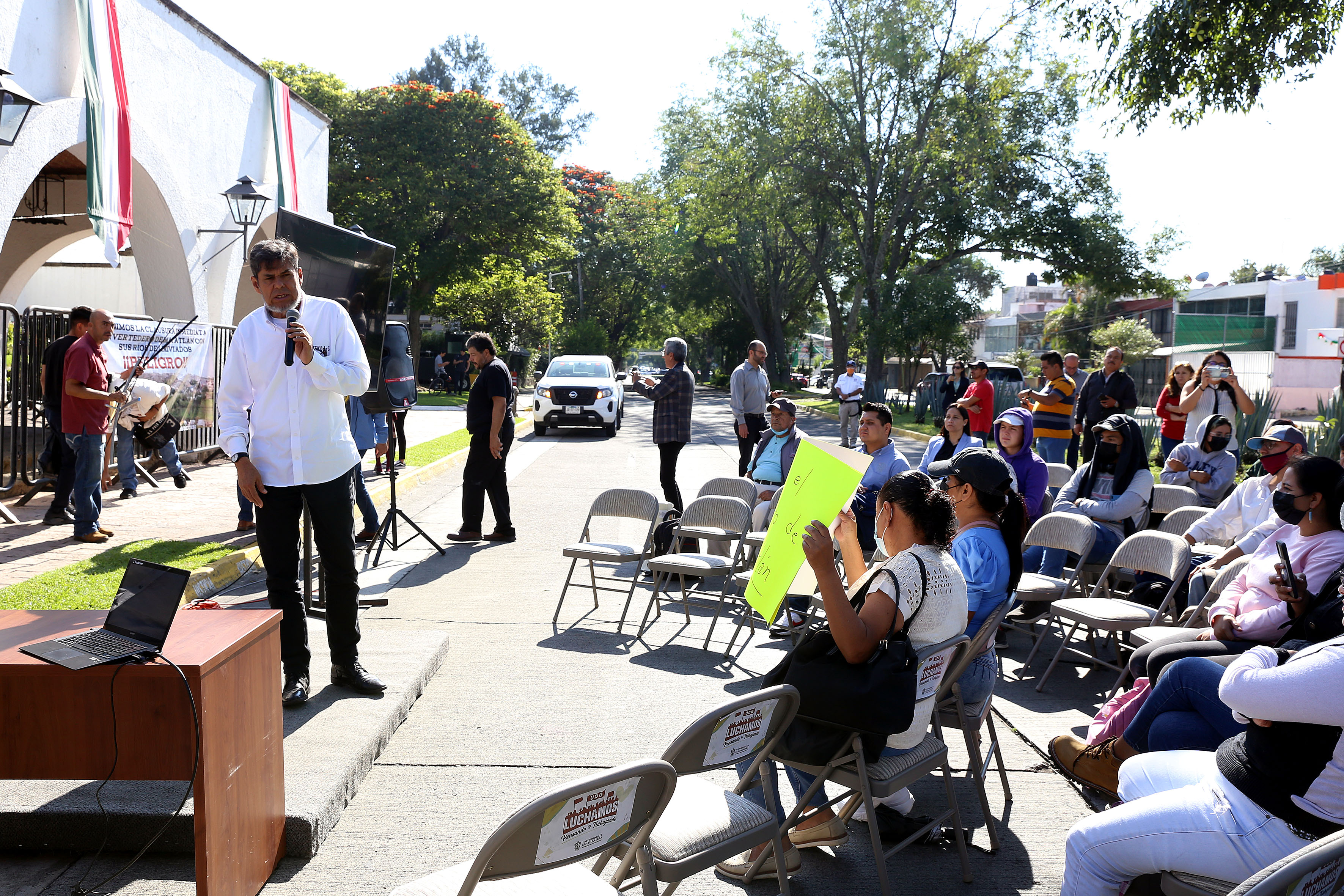Sobre la avenida Manuel Acuña, frente a Casa Jalisco –bloqueada por vallas–, 172 universitarios presenciaron la segunda master class dirigida al gobernador y dictada por el Director del Museo de Ciencias Ambientales (MCA), doctor Eduardo Santana Castellón.