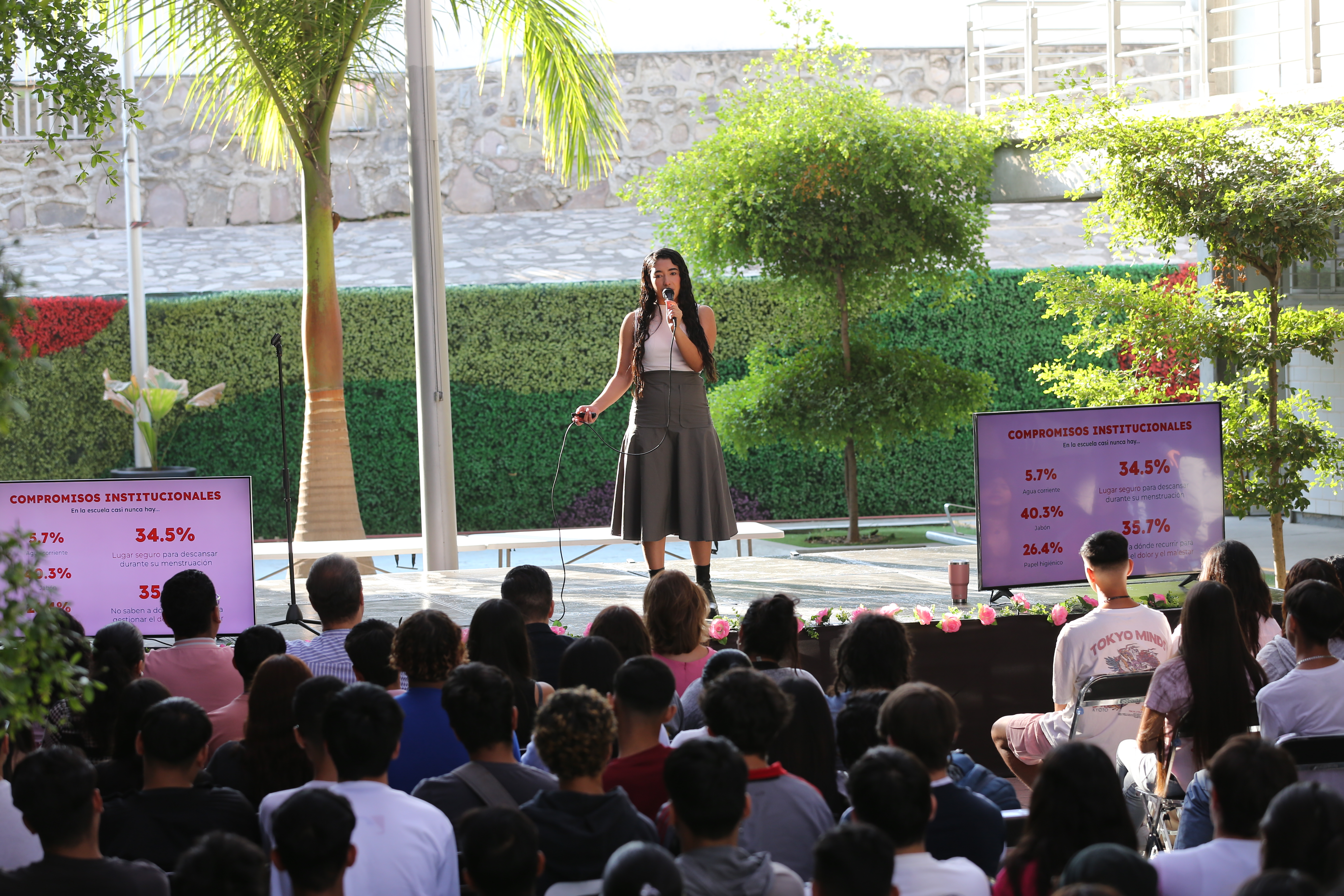 La representante estudiantil es la primera en abrazar la agenda de menstruación digna a petición de la comunidad estudiantil de personas menstruantes y generar una política universitaria única en México y América Latina. Compartió su propia experiencia con la menstruación, los desafíos, tabúes y estigma de un proceso biológico en el que la mayoría de las mujeres no se sienten seguras.