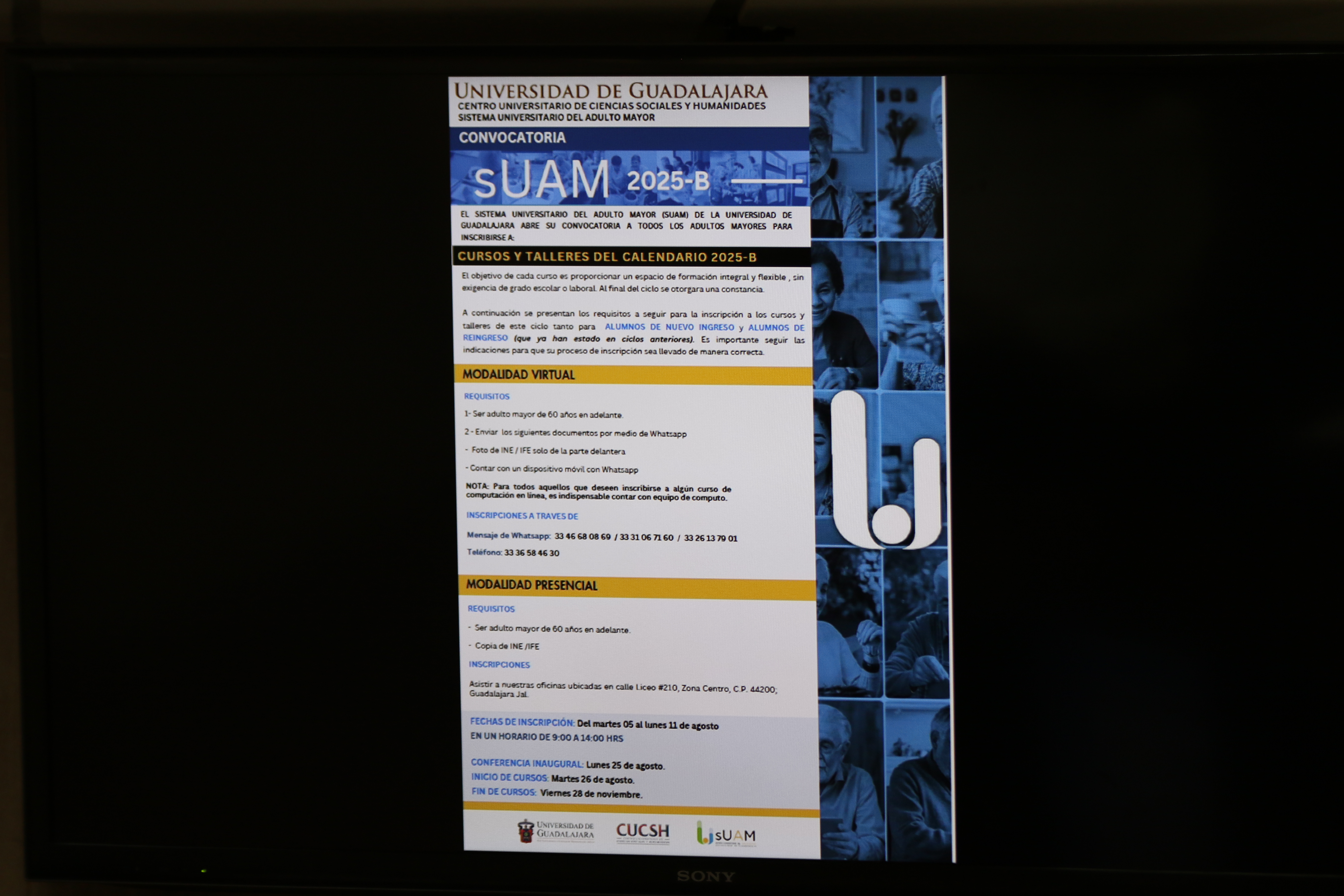 Derecho, computación, idiomas, historia, agricultura y salud mental son algunas temáticas de los cursos que ofrece, de manera completamente gratuita, el Sistema Universitario del Adulto Mayor (SUAM) de la UdeG para su calendario 2025-B.