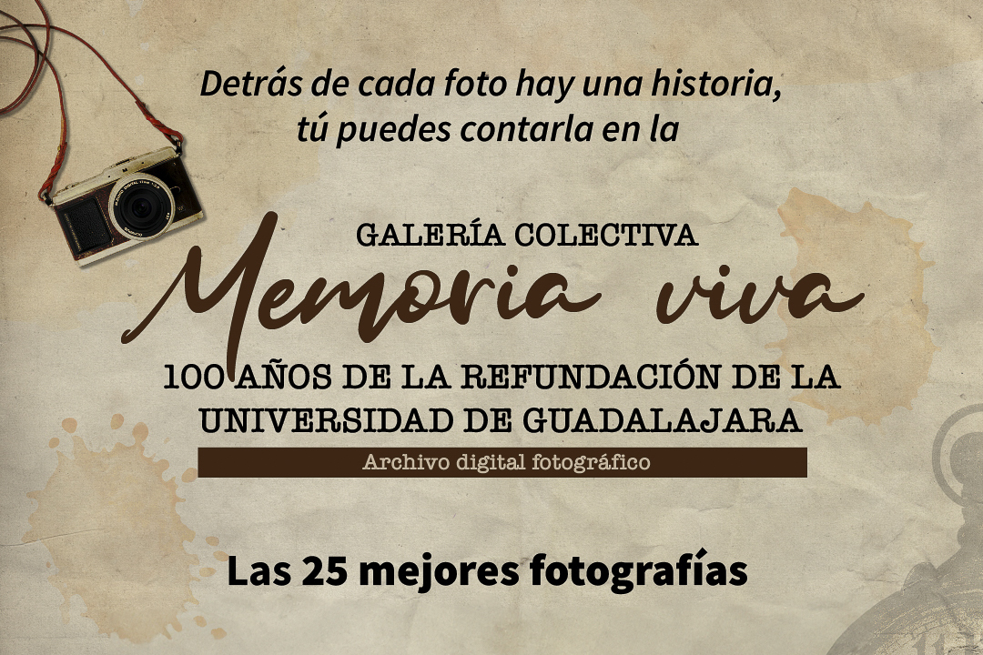La Coordinación General de Patrimonio y la Coordinación de Fomento al Desarrollo Integral de la Universidad de Guadalajara (UdeG) invitan a la comunidad universitaria a participar mediante la donación de fotografías en la galería colectiva “Memoria viva: 100 años de la refundación de la UdeG” y “Tu foto, nuestra historia”, con el fin de conformar un archivo comunitario del último siglo y un repositorio que albergará el Archivo Histórico de la UdeG.