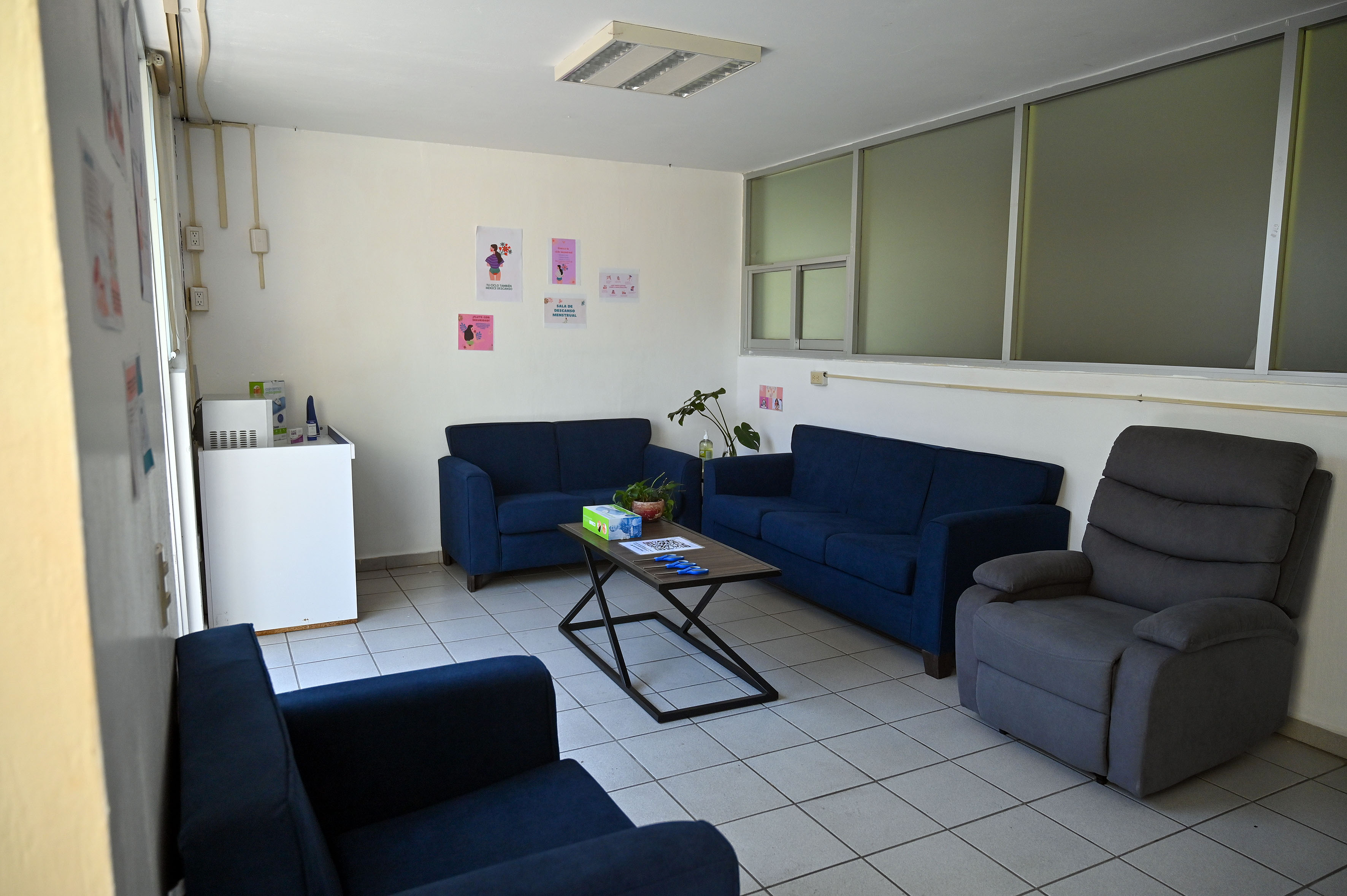 El espacio está equipado con tres sillones y un reposet para garantizar el descanso; además de contar con insumos como toallas sanitarias, tampones, analgésicos de venta libre, tés y cojines eléctricos. También dispone de un microondas para calentar bolsas de agua y ofrece material bibliográfico para informar y dignificar este proceso biológico a las alumnas.