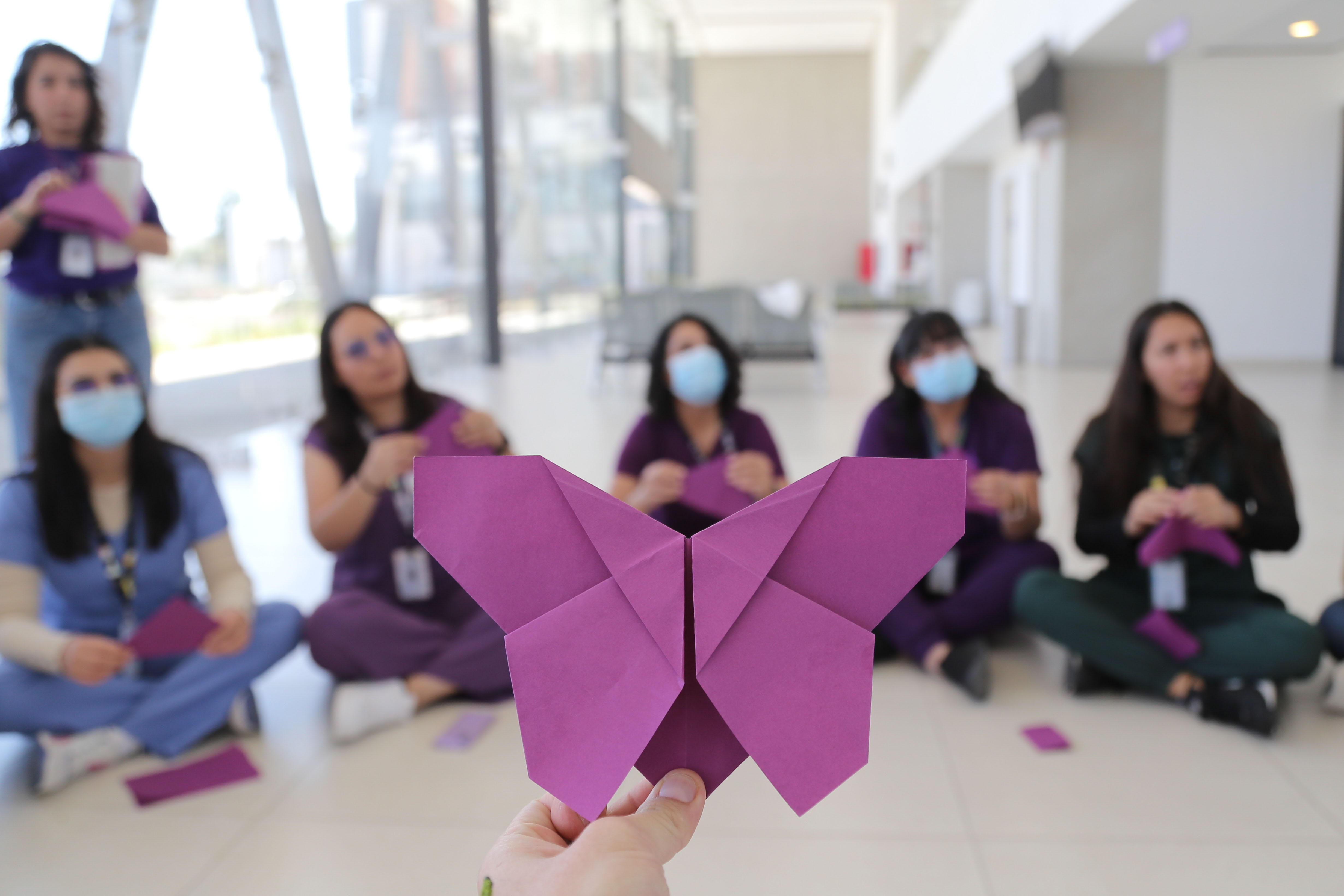 Para concluir la jornada conmemorativa, las mujeres integrantes del hospital realizaron una actividad de papiroflexia, en la que elaboraron mariposas que posteriormente colocaron en un mural, como símbolo de la presencia, la fuerza y la participación de las mujeres en la vida institucional en el marco del 8M.