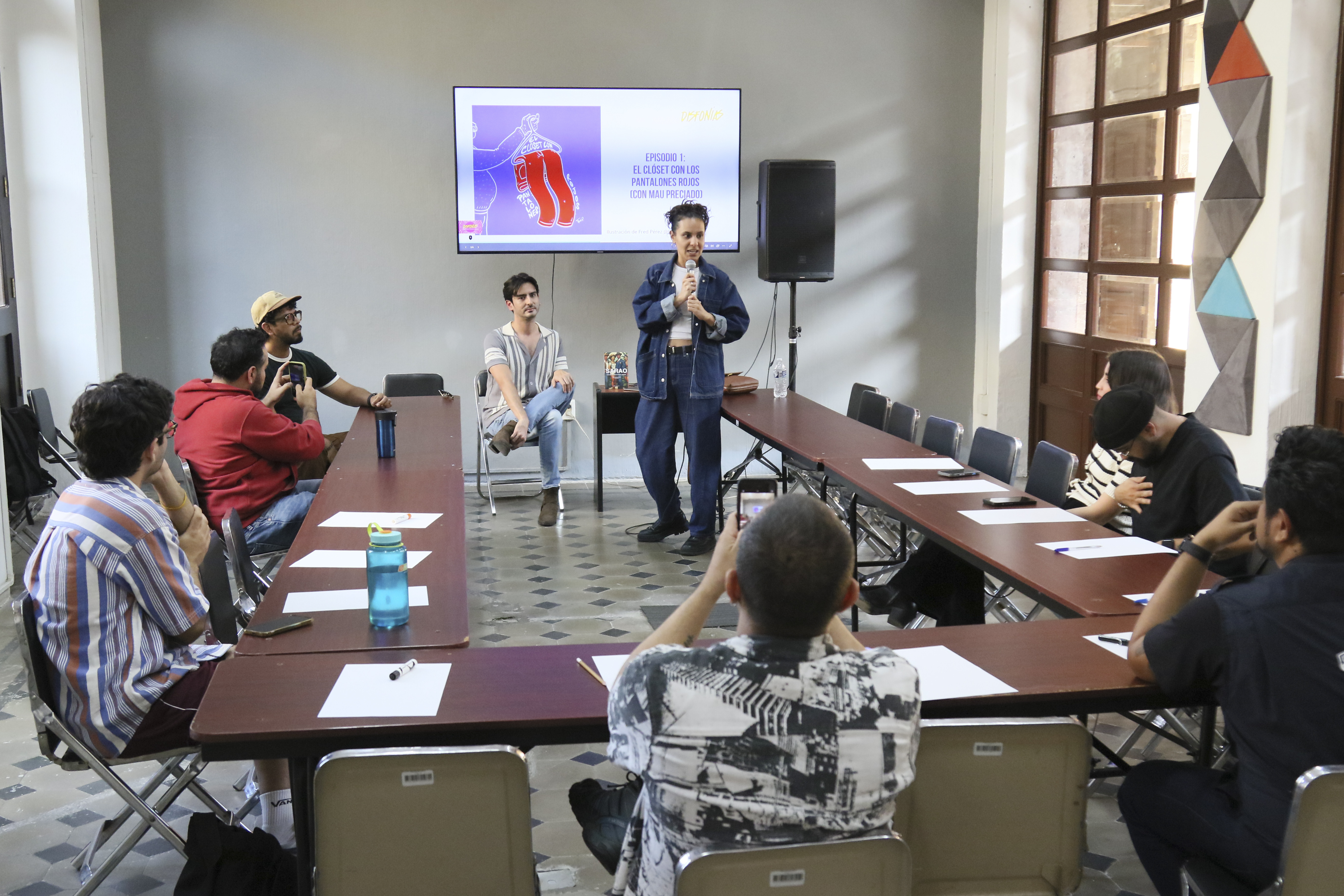 Previo al lanzamiento oficial del podcast, este miércoles 4 de febrero, los creadores de la Disfonías presentaron el primer episodio en el Edificio Arroniz, en una escucha colectiva en presencia del protagonista de la historia, Mauricio Preciado.