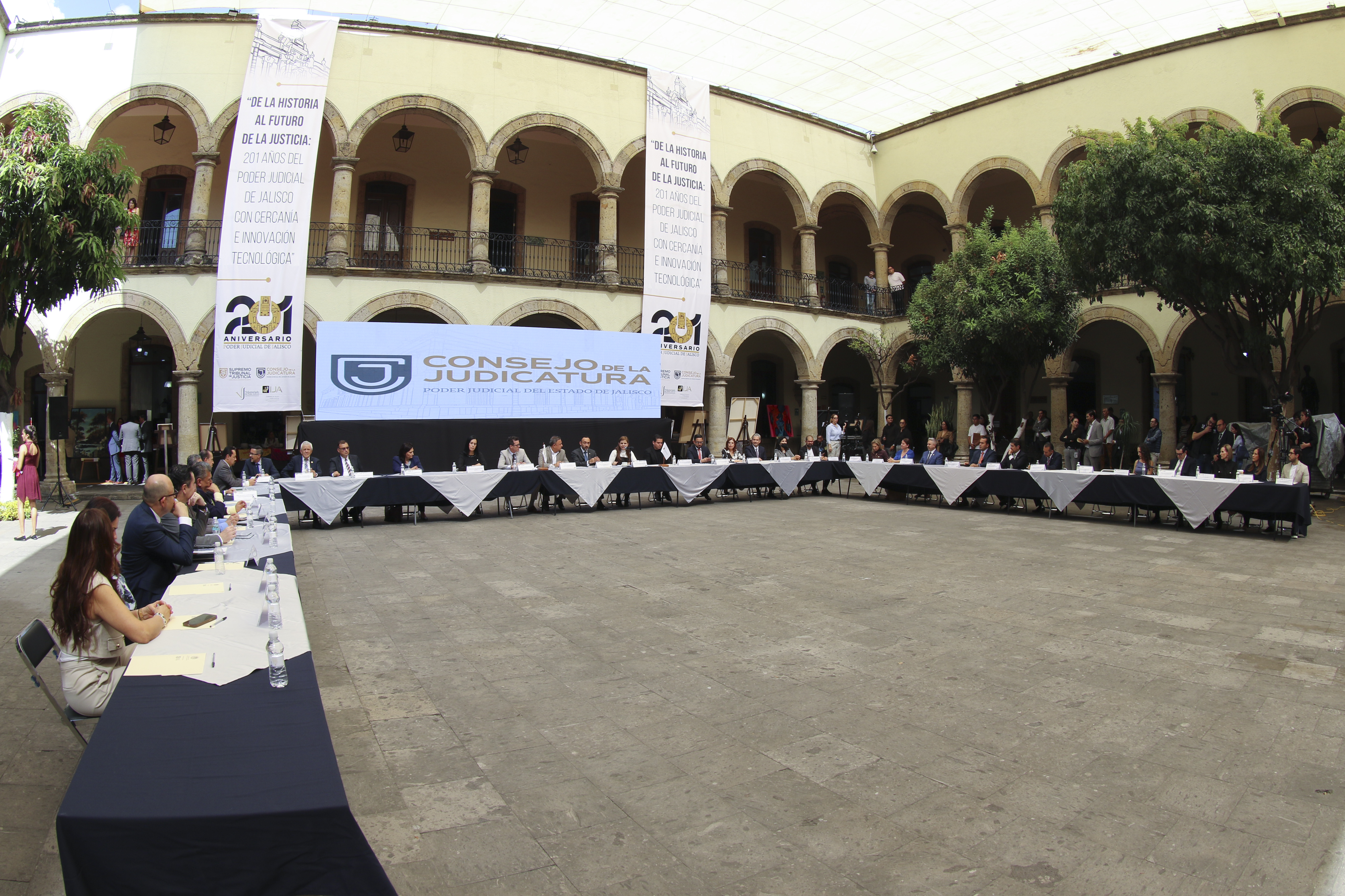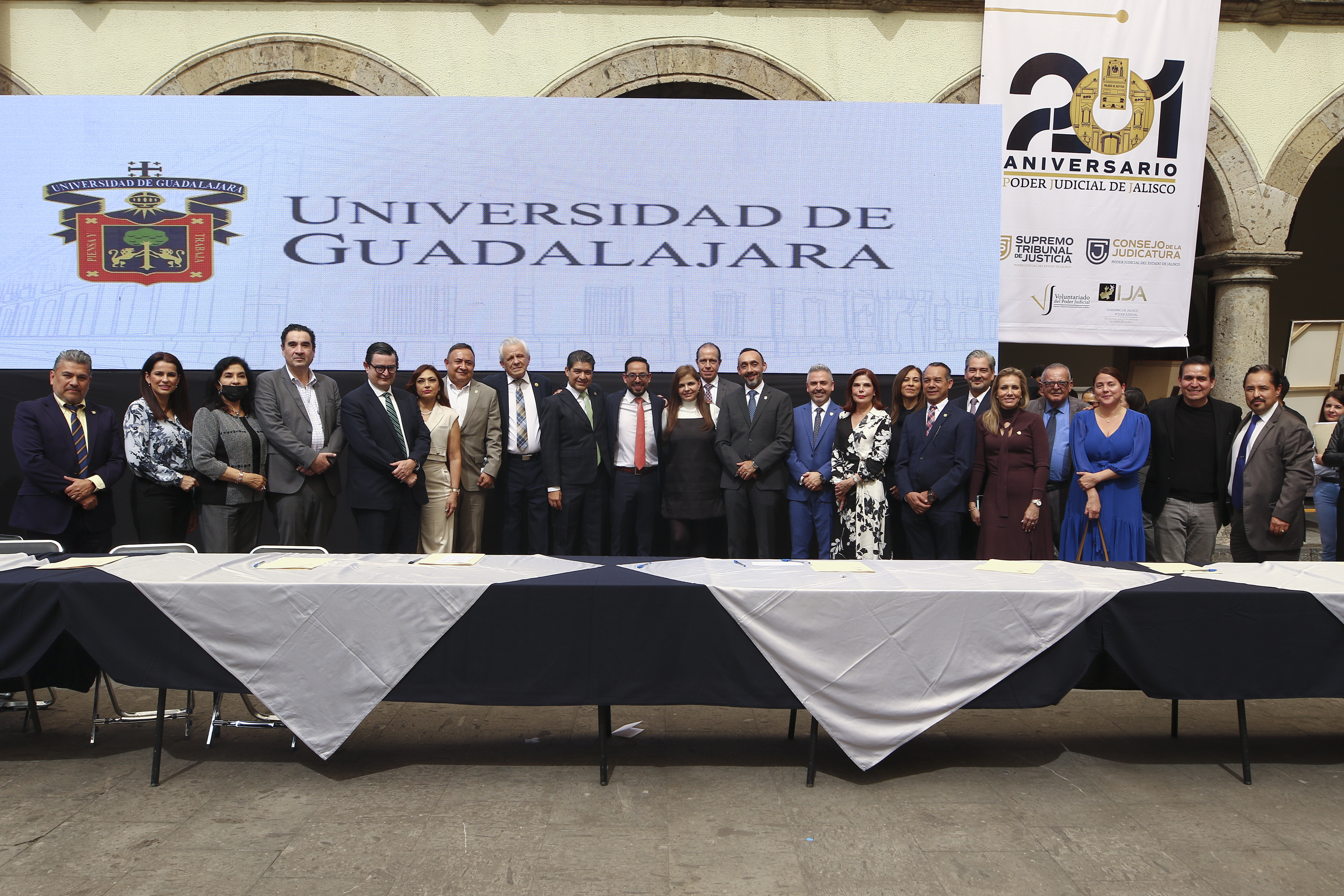 El convenio, que se realiza en el marco del 201 aniversario del Poder Judicial de Jalisco, representa la formalización de una relación orgánica entre ambas instituciones y trasciende a las aulas universitarias al llevar beneficios a profesionales del Derecho y a la población que requiere de los servicios y asesoría de éstos, declaró la Rectora General, Karla Planter Pérez.
