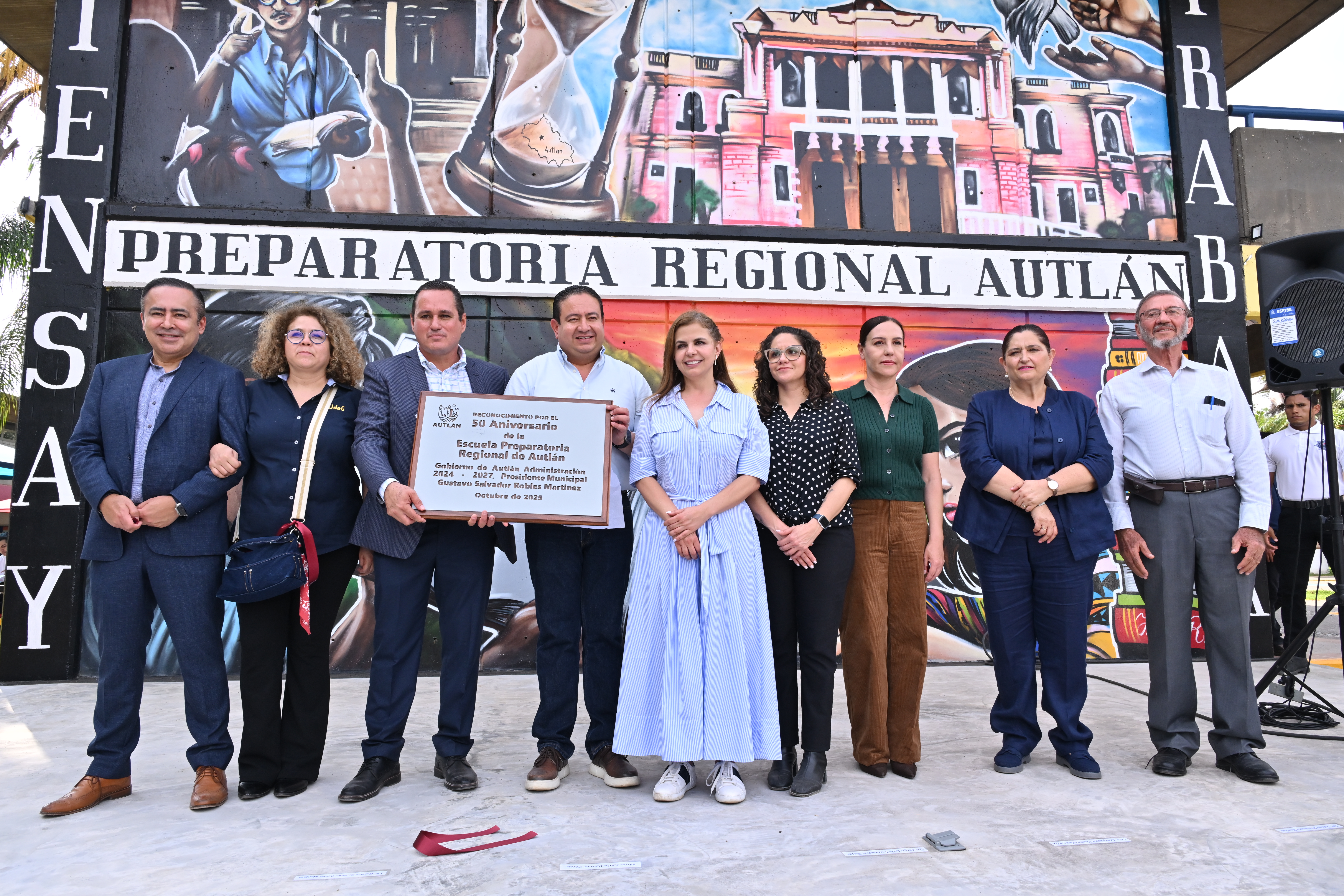 El presidente municipal de Autlán, Gustavo Robles Martínez, entregó un reconocimiento a la preparatoria por la labor educativa a favor de la comunidad autlense.