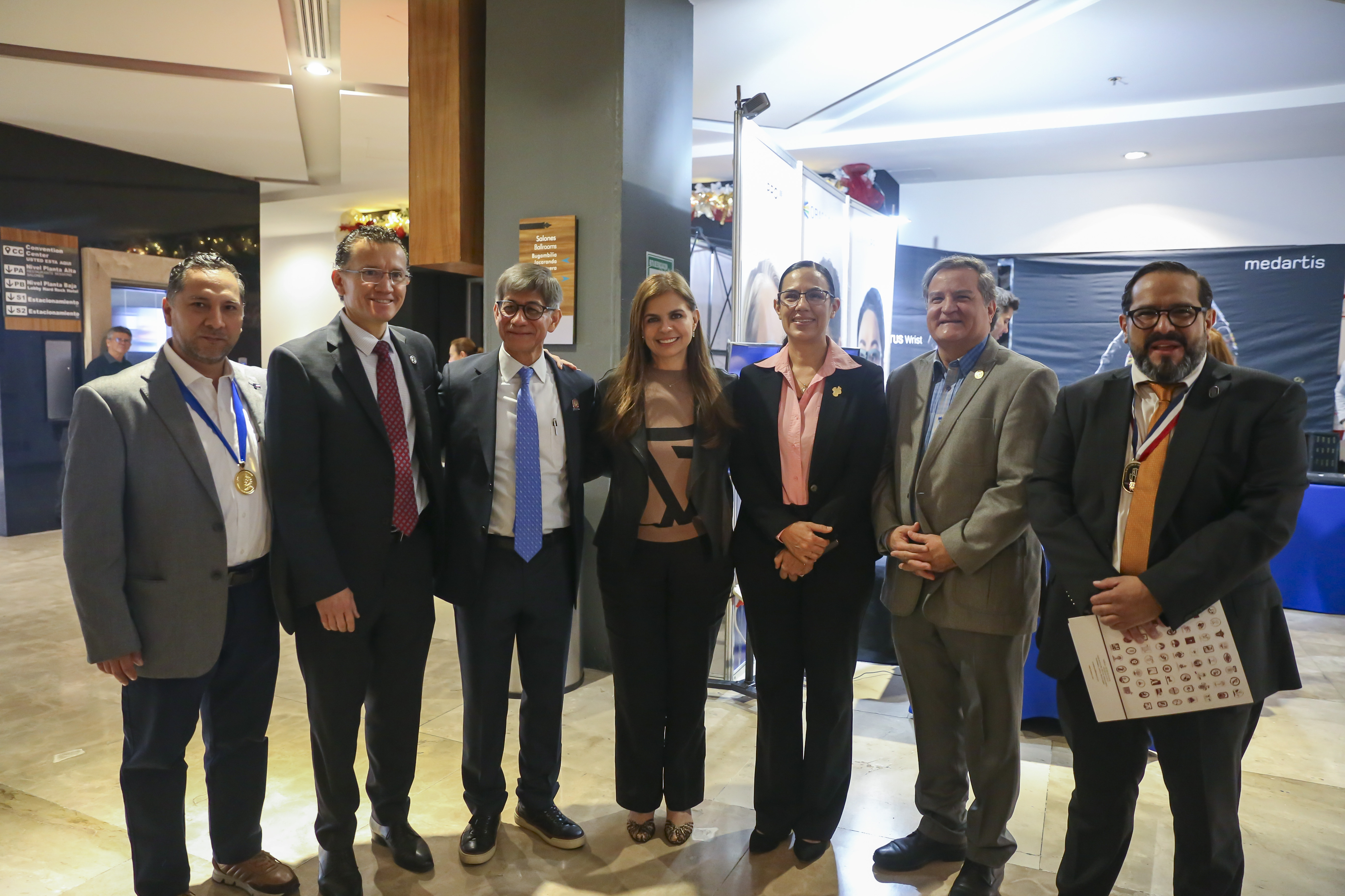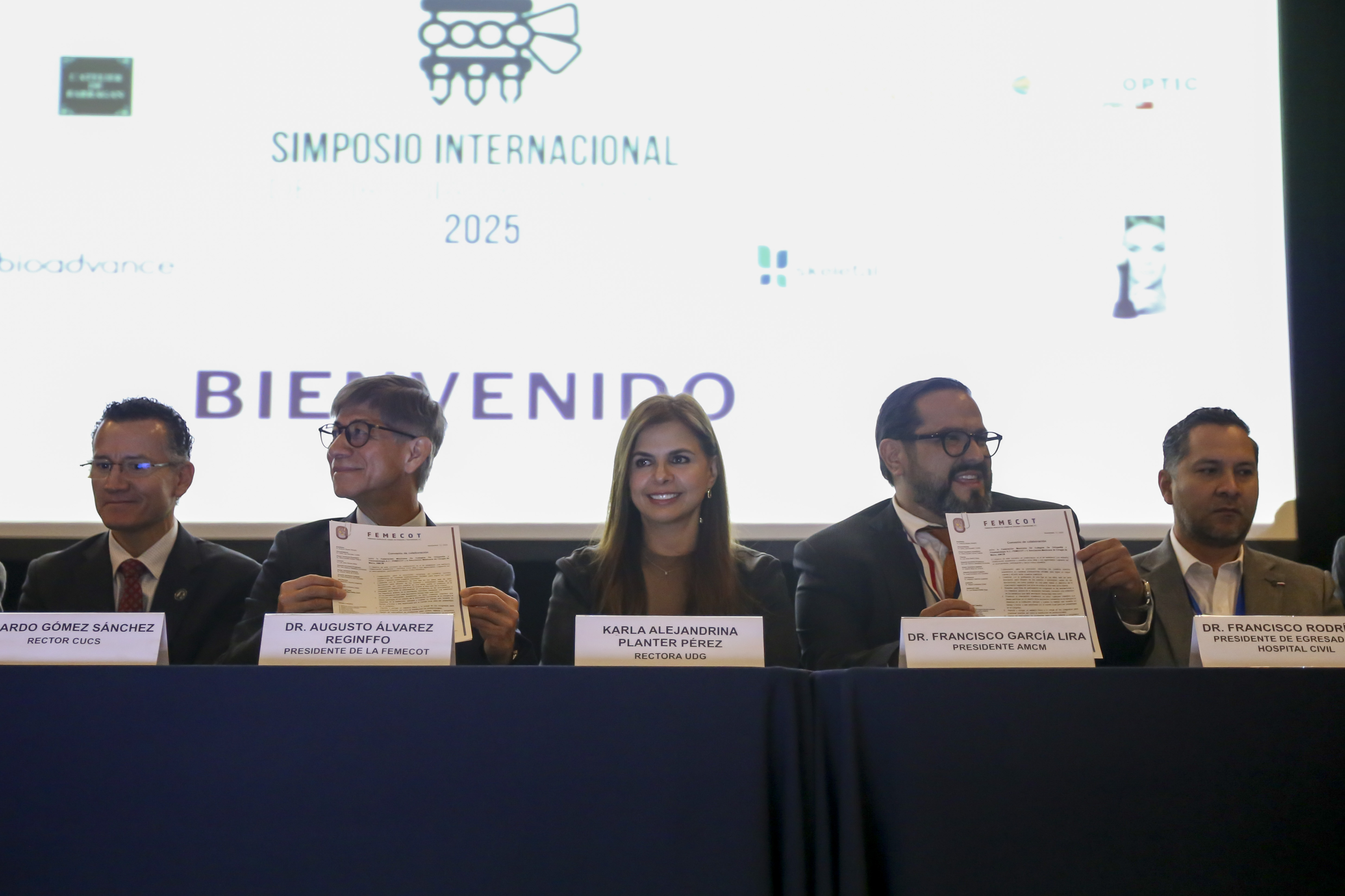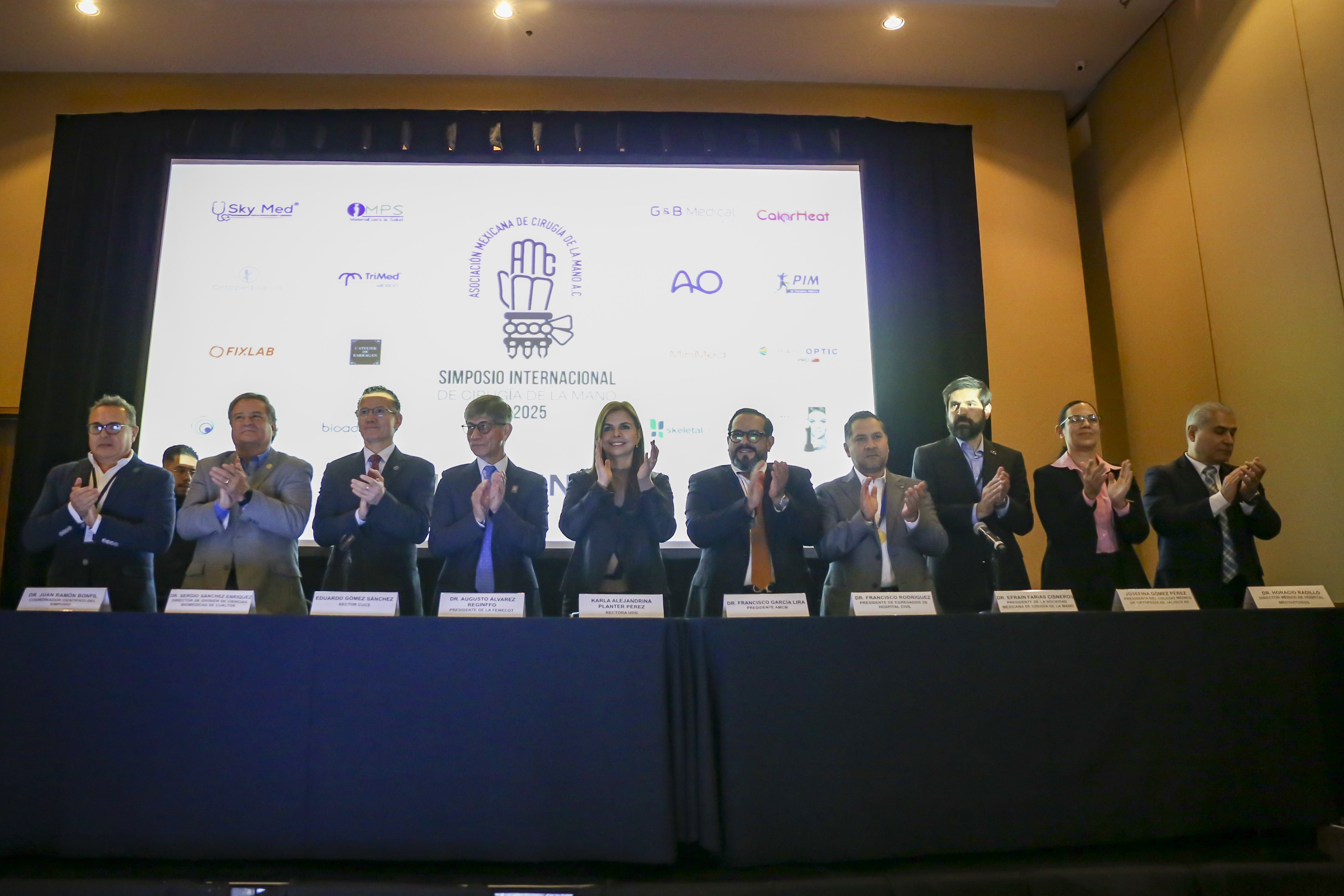 Al acto protocolario asistieron también el Rector del Centro Universitario de Ciencias de la Salud (CUCS), doctor Eduardo Gómez Sánchez; el Coordinador Científico del simposio, doctor Juan Ramón Bonfil; el Presidente de la Sociedad Mexicana de Cirugía de la Mano, doctor Efraín Farías Cisneros y la Presidenta del Colegio Médico de Ortopedia de Jalisco, AC, doctora Josefina Gómez Pérez.