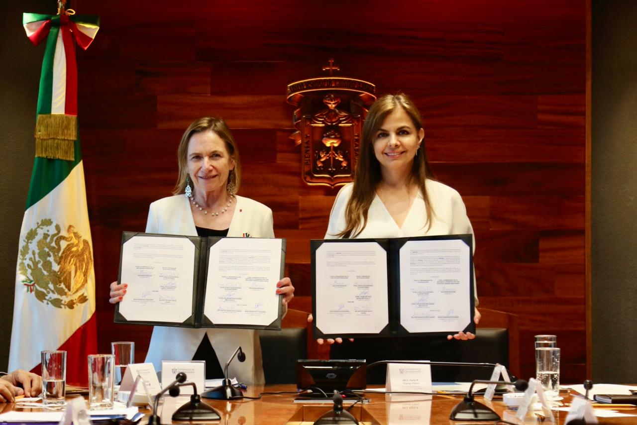 Por ello, este viernes la Rectora General de la UdeG, maestra Karla Planter Pérez y la embajadora de Francia en México, Delphine Borione, firmaron un convenio específico con la Embajada de Francia para llevar a cabo dicho proyecto que abarca la presencia de la diáspora francesa, y también renovar el acuerdo de colaboración que existe desde 2001 entre esta Casa de Estudio y el país Europeo.
