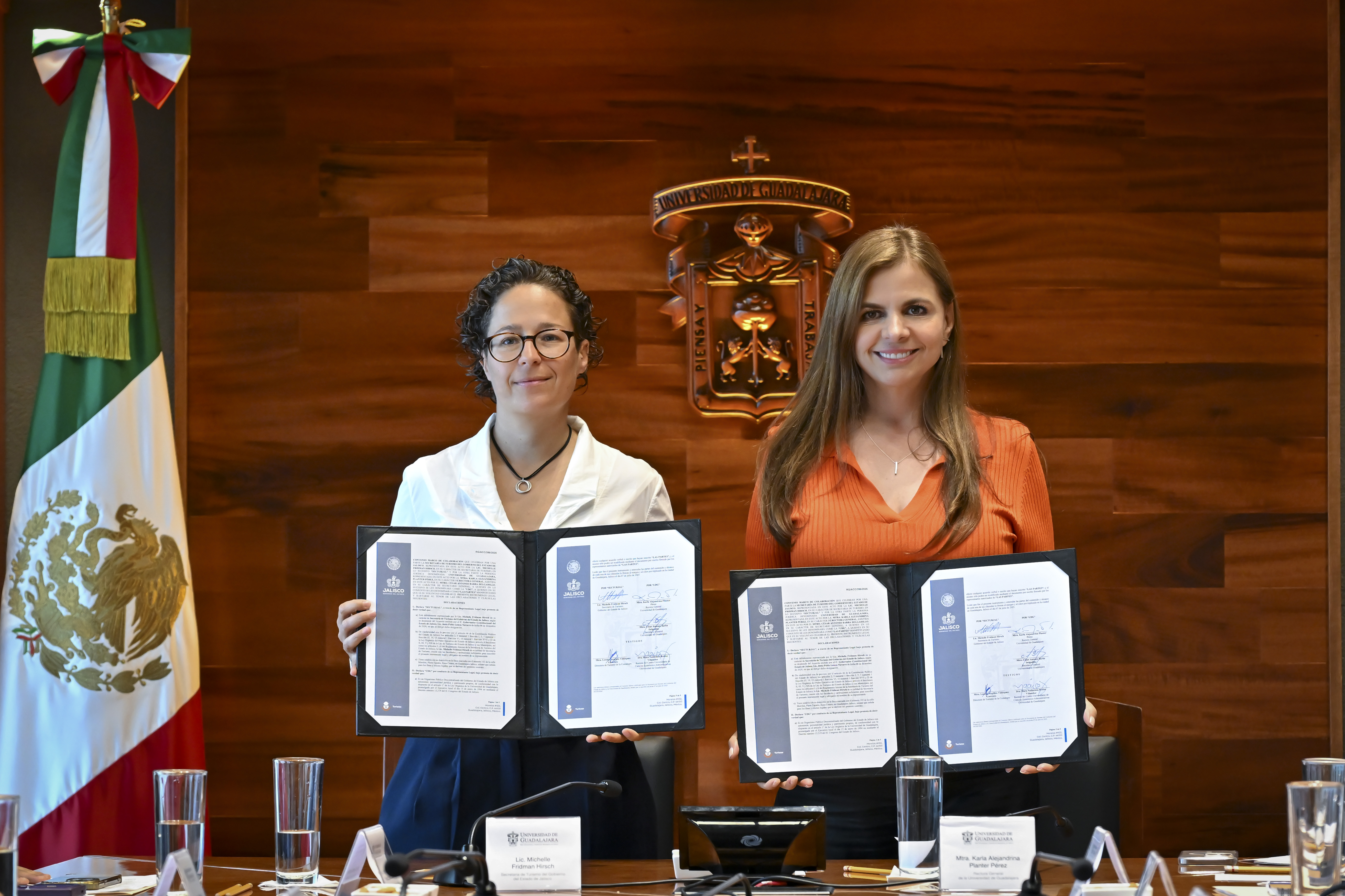 La Universidad de Guadalajara (UdeG) y la Secretaría de Turismo de Jalisco firmaron este mediodía un convenio de colaboración, para que los más de mil 200 estudiantes de la licenciatura en Turismo del Centro Universitario de Ciencias Económico Administrativas (CUCEA), formen a los guías de turistas, en aras de la profesionalización del capital humano dedicado a este sector.