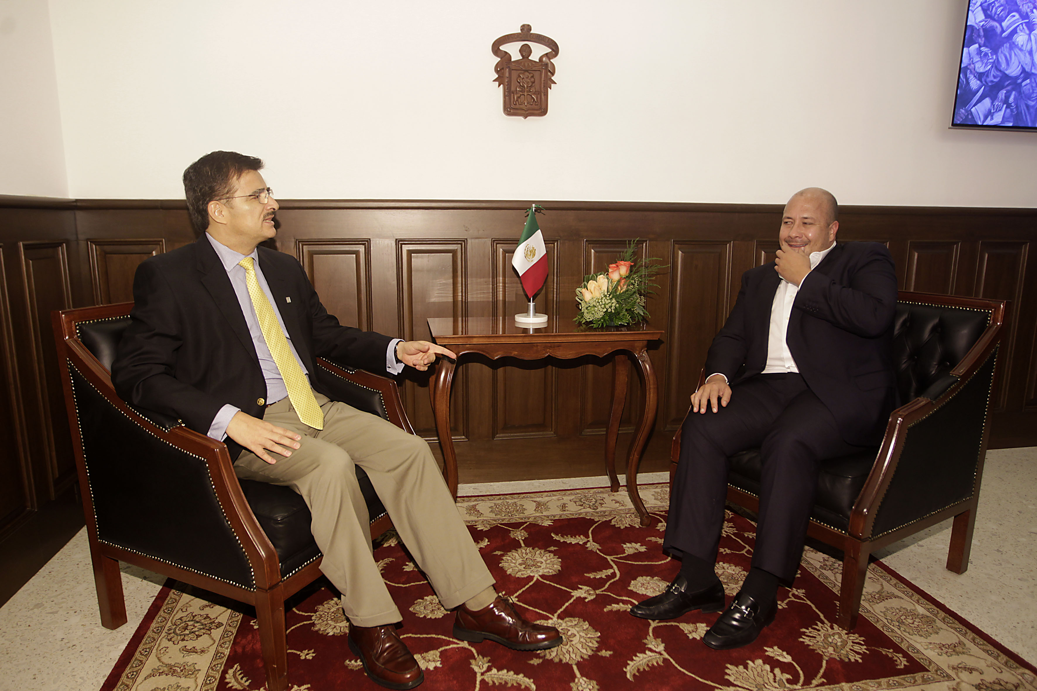 Reunión del maestro Itzcóatl Tonatiuh Bravo Padilla, con el presidente municipal electo de Guadalajara, Enrique Alfaro Ramírez