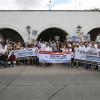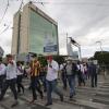 Trabajadores administrativos, académicos, funcionarios y algunos estudiantes caminaron por las calles de la ciudad respetando en todo momento las señales de tránsito y el tráfico vehicular. Algunas personas portaron pancartas defendiendo la causa universitaria.