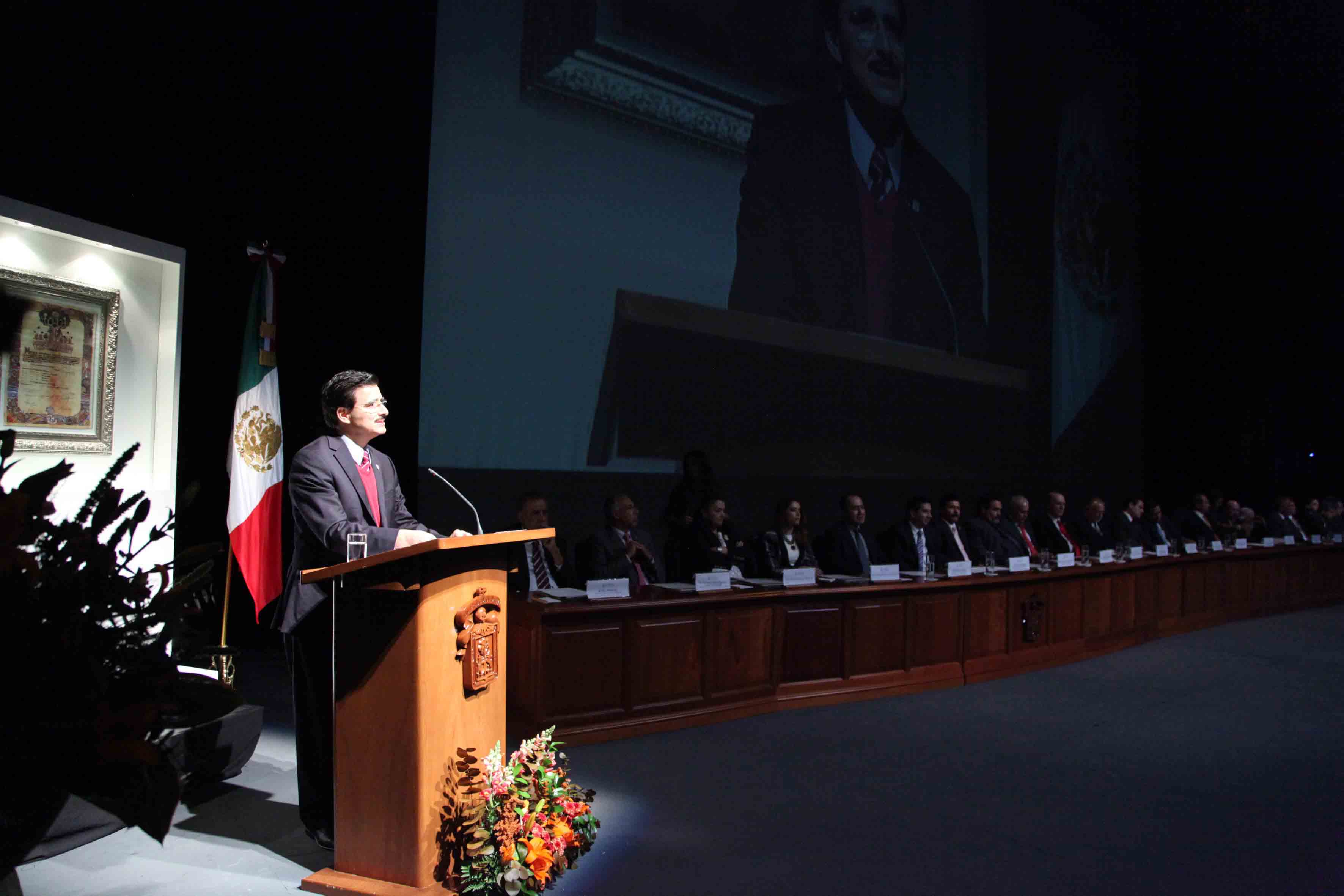 El Rector General reiteró que “es importante ampliar oportunidades a los jóvenes”, no conformarnos con más de 30% de atención y establecer un acuerdo nacional y estatal para garantizar el derecho constitucional a la educación. Hizo referencia a los hechos del país “que lastiman y preocupan” como la injusticia y la desigualdad y el caso de Iguala. Resaltó el papel de las universidades por contribuir “a la inclusión social, a las soluciones y a las acciones socialmente responsables”.