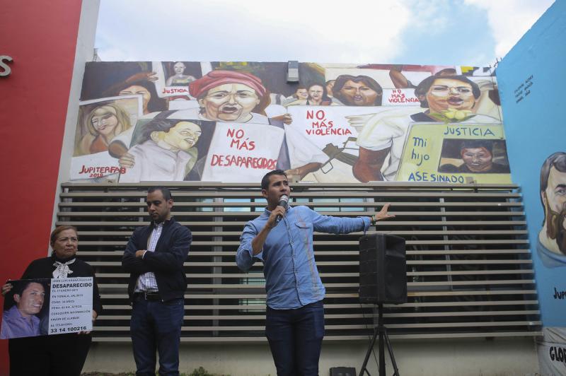 Los muros de las oficinas de la FEU sirvieron como lienzo para visibilizar la violencia y el drama de las personas desaparecidas en Jalisco y sus familias en un mural que fue inaugurado este lunes por el presidente saliente de esta organización estudiantil, Jesús Arturo Medina Varela y Francisco Javier Armenta Araiza, Presidente electo de la FEU 2019-2022.