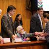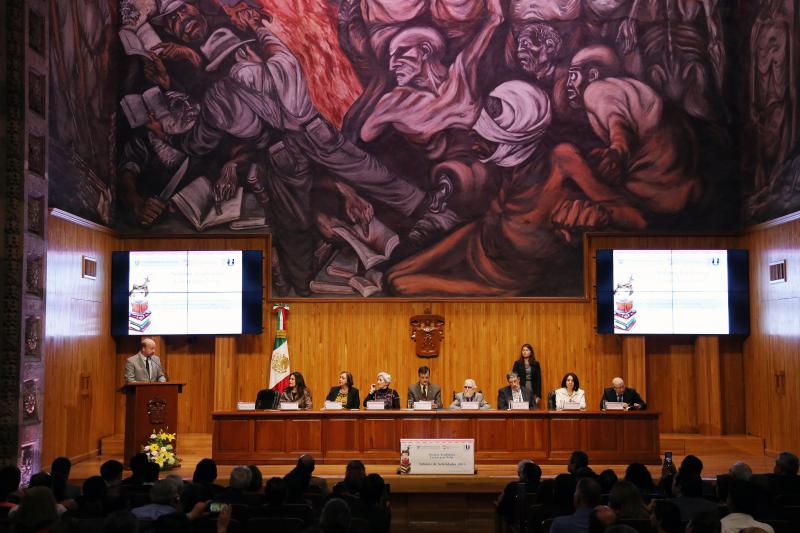 La mesa del presídium del acto estuvo integrada, además, por el Doctor Honoris causa y recién nombrado Premio Cervantes, Fernando del Paso; la directora de la FIL Guadalajara, doctora Marisol Schulz Manaut; la señora Lucinda Ruiz Posada, viuda del poeta Hugo Gutiérrez Vega; el Maestro emérito de la UdeG, Fernando Carlos Vevia Romero; la escritora y poeta Carmen Villoro, así como el maestro Javier Espinoza de los Monteros, director general del Sistema de Educación Media Superior (SEMS).