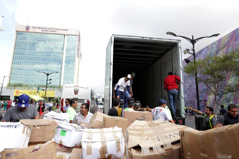 El Coordinador General de Servicios a Universitarios, maestro César Antonio Barba Delgadillo, informó que desde hace 14 días se ha realizado una colecta de víveres con el apoyo de los centros universitarios, escuelas preparatorias y el centro de acopio instalado en la Rambla Cataluña, además de la ayuda de mil 800 voluntarios, quienes han recibido donativos, han clasificado y empaquetado los productos.