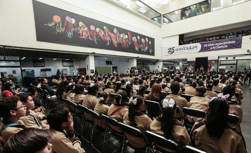 Al acto protocolario, que se realizó este lunes en el Museo UNIVERSUM, en Ciudad de México, participaron aproximadamente 200 niñas y niños de la Secundaria Técnica 17.